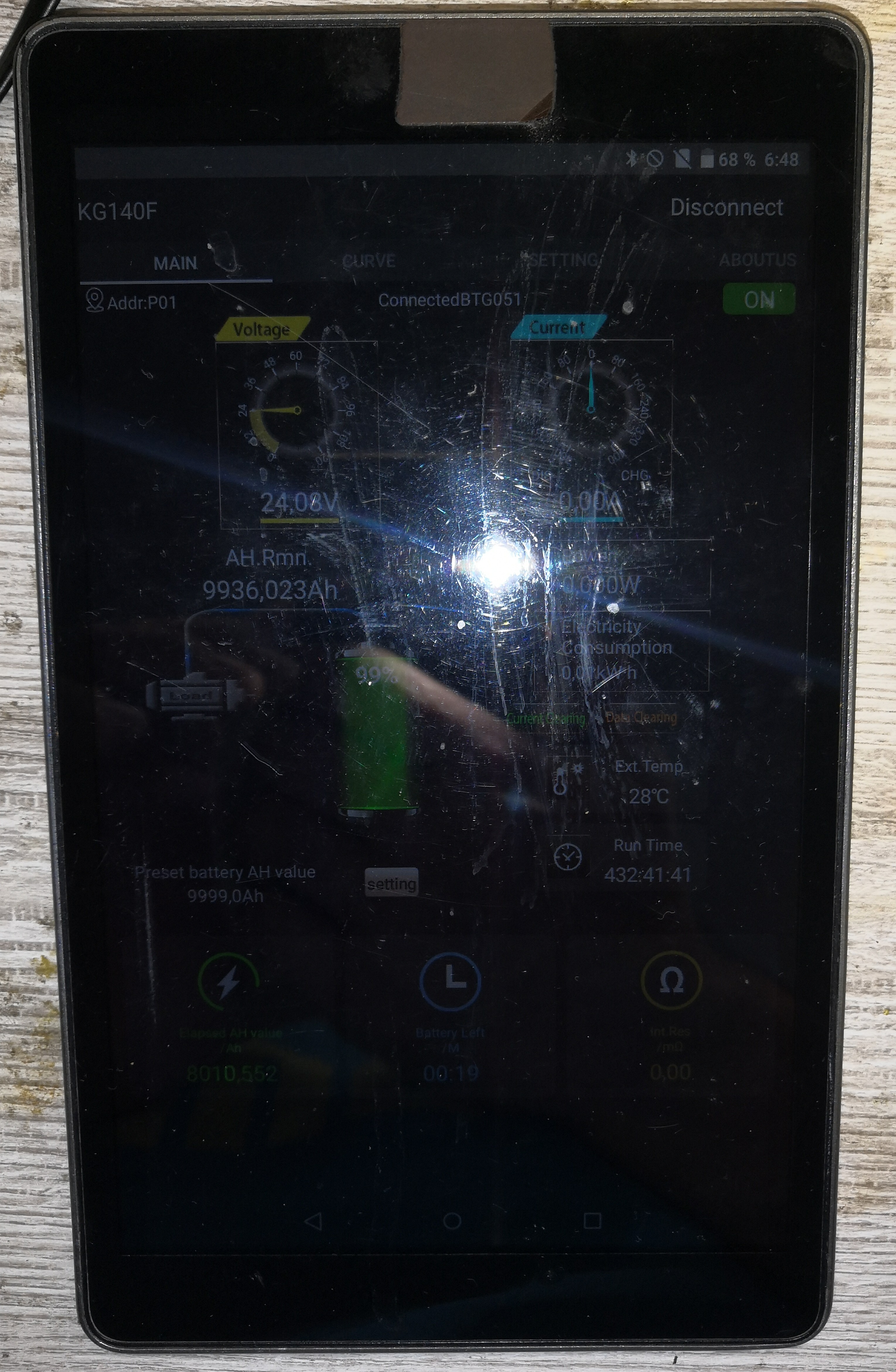 Aplikace pro android, kde ukazuje kwh a AH, reset a nastavení