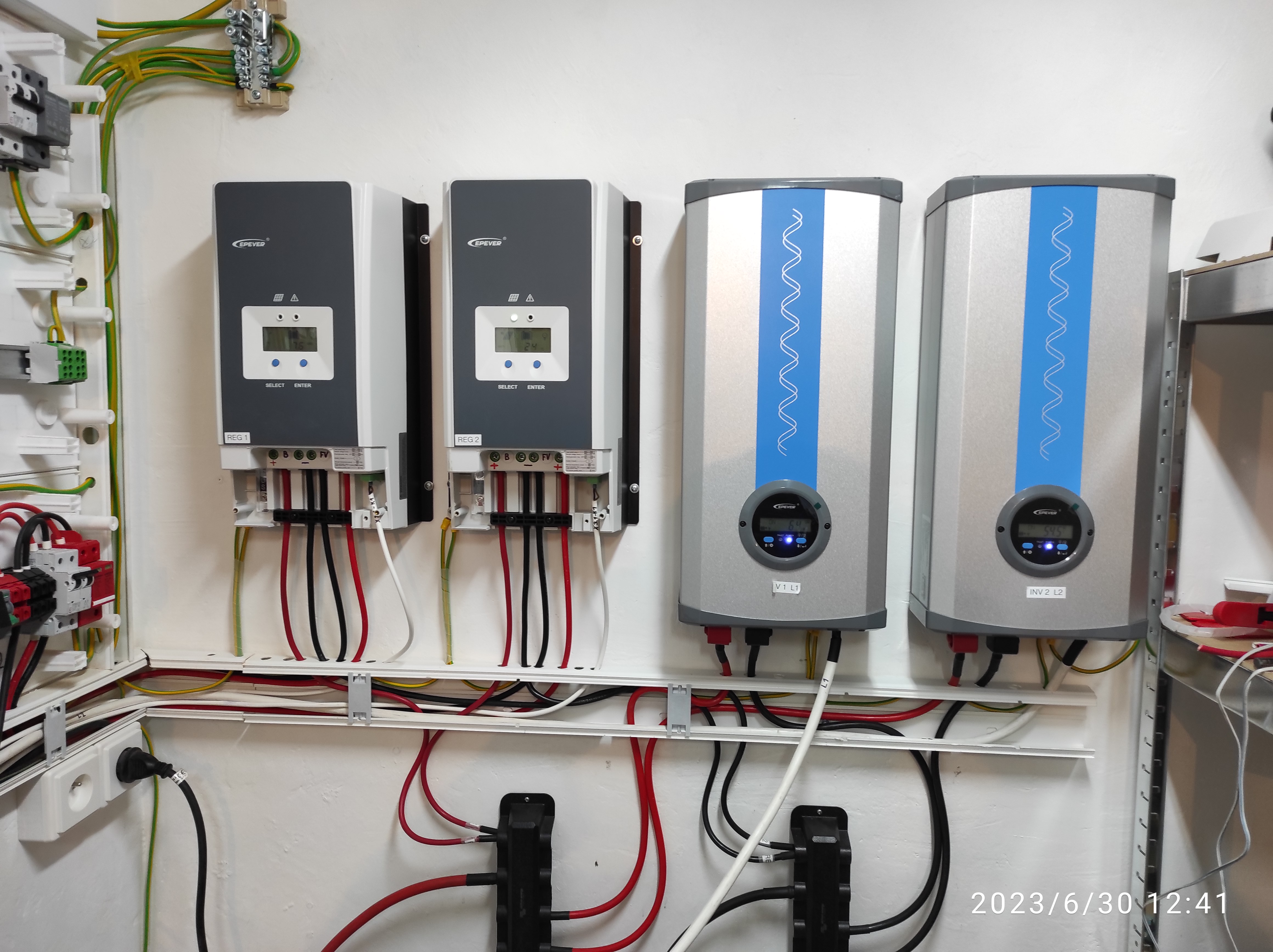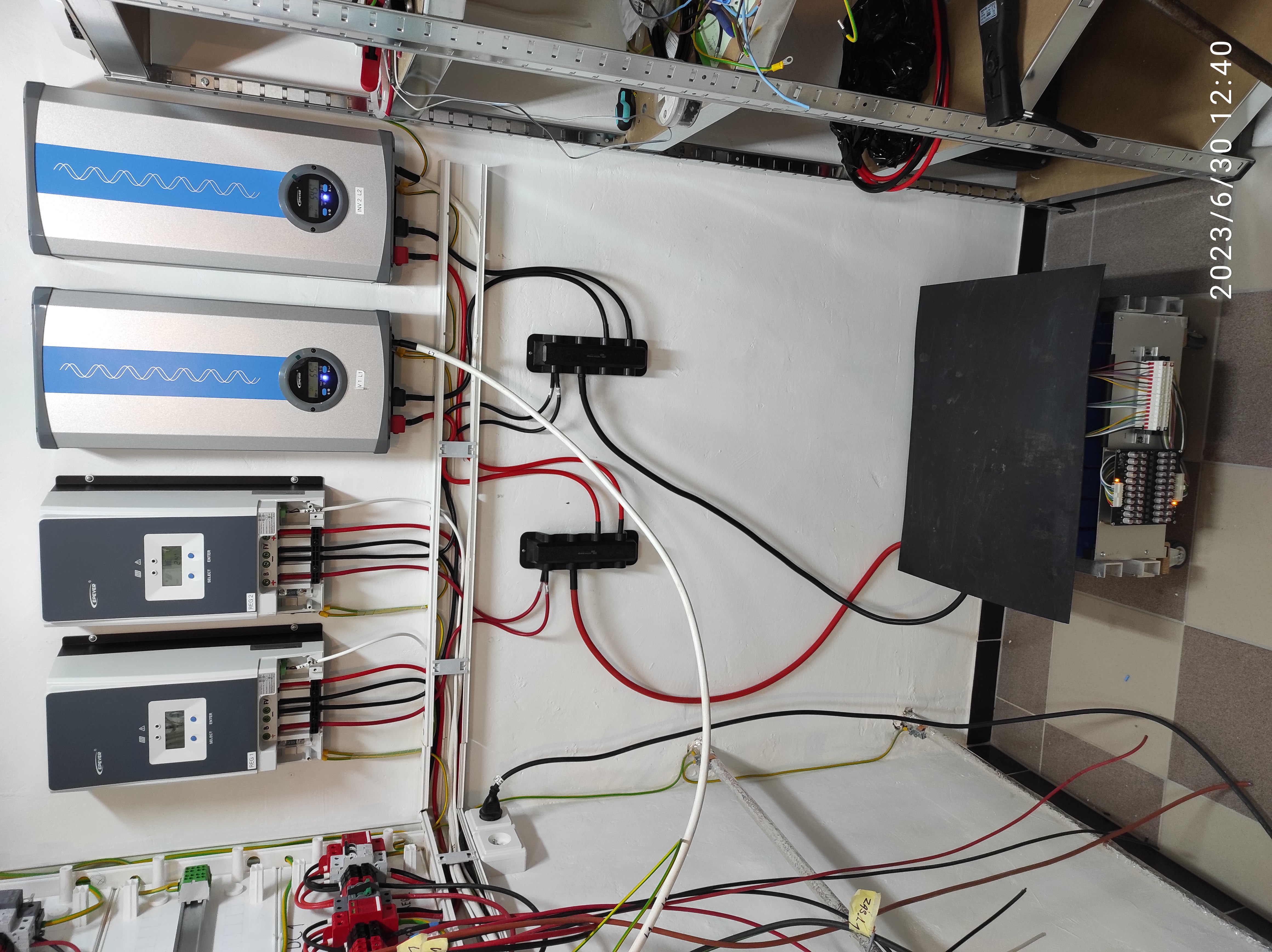 Tak práce na FVE přerušeny z důvodu operace menisků v koleni. Jsem docela nešťastný protože celá sezóna je v háji. Na žebřík nevylezu takže až odložím berle připadají v úvahu jen práce na zemi. Před operací jsem komplet předělal uspořádání přístrojů v technické místnosti. Měniče epever dělaly v horizontální poloze takový kravál že jsem to přes odvětrávání slyšel až venku na terase. Hlavně mne štvalo to spínání v desetiminutových intervalech i při nezatíženém měniči. Z toho důvodu jsem je otočil svisle a vyměnil jsem v nich ventilátory za pomalejší (3.000 ot.). Testoval jsem to při trvalém zatížení 3 kW a i po cca dvou hodinách je měnič teplotně úplně v pohodě.