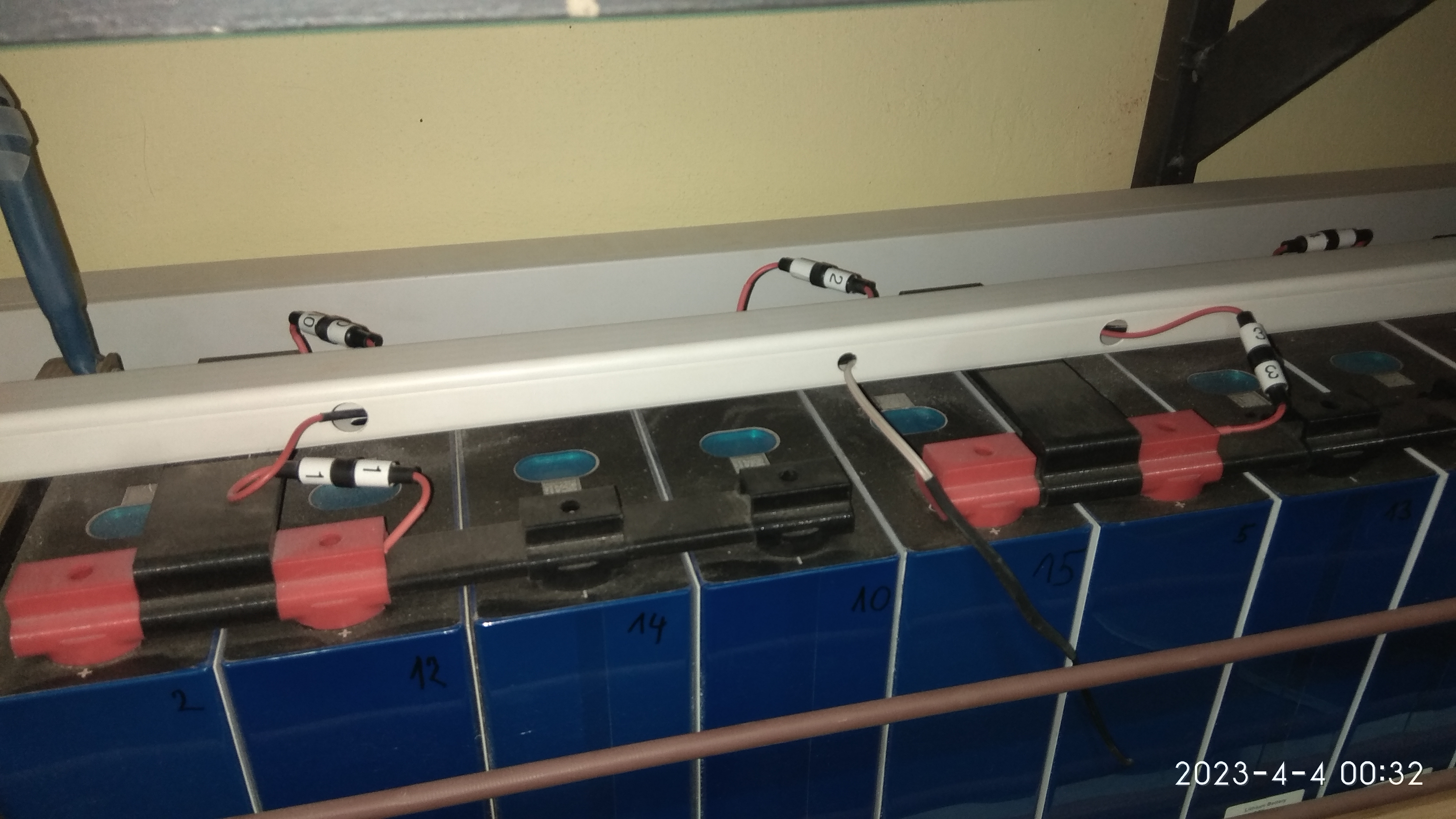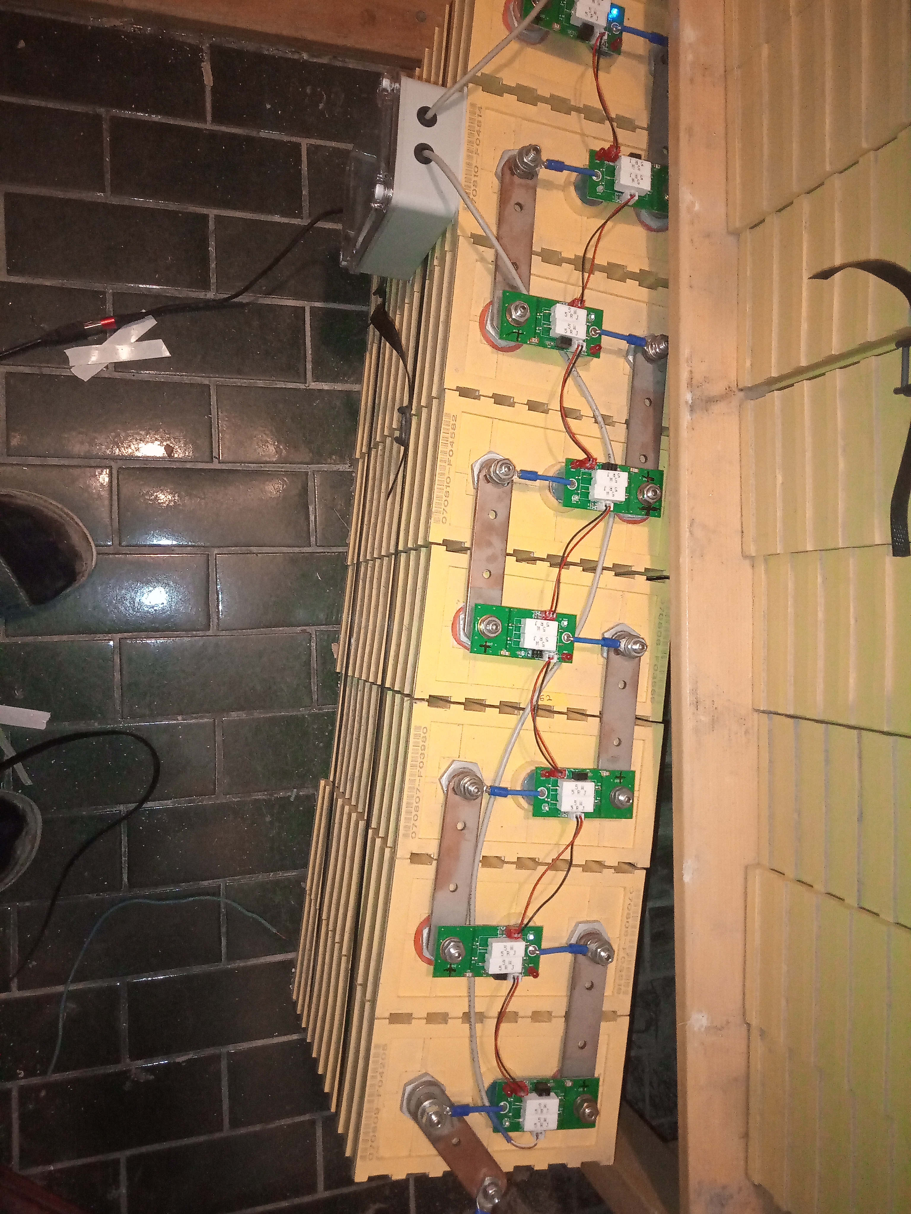 A dovolím si oponovat: origo destičky mají na sobě několik smd odporů, na který si někteří nalepují tepmosamolepkou chladiče a pak to ventilátorují. Celý to možná vyzáří 4-5W. ostatně tomu odpovídá i hodnota původních odporů. Já tam mám dva cihláky, každej 5W, a jsou ještě kousek nad deskou. I tak se ta deska prohřeje, ale ne tak rychle. Další level by byly odpory s Al chladičem, ale to je podle mě zbytečný, je třeba řešit i cenovku, když se to dělá 16x, 32x, 48x, 64x.... A co je další feature, na dalším akupak je plexi kryt, na kterým je nahoře ventilátor, kterej se spíná řídícím modulem BMS při nastavené teplotě. Tady pod regálem to není ani potřeba, ale ten další akupack je pod stropem, a tam se víc drží teplo... plexikryt drží plastovejma šestihranama, co jsou vetknutý do imbusovejch konců svorníků, a nahoře mají M4 závity, zvrchu plastový šroubky (kupovaný, nebudu tisknout předse všechno, navíc závitystejně musím protahovat závitníkem) - možná paranoia, ale padající kusy kovu na baterku mě děsí. Tady na fotce ještě nejsou pojistky mezi 1-2 článkem a mezi 15-16článkem - ono je té diybms vlastně jedno, kde se akupak přeruší, a tím pádem nemusím vymejšlet uchycení druhýho konce pojistky. Každej akupack má na konci 175A Anderson zásuvku, aby se dal kvůli servisu nebo testování odpojit - to je taky výsledek dlouholetýho provozování baterek... Samozřejmě, jde to i jinak, ale. Mě tohle po dlouhým zvažování pro a proti vyšlo jako nejlepší cesta. Ale třeba v elektromotoce mám JK BMS a nic nevymejšlím. A věřím na pojistkovou funkci drátů, protože jsou 0.35mm2 v silikonové izolaci, tj je šance, že měď zmizí a silikon zůstane. v každým případě, když se podíváš, tak uprostřed jsou otvory jak v laminátu, tak v těch vytištěnejch izolačních vložkách, a v těch jsou dráty od článků k balanceru pěkně jeden vedle druhýho, po odzkoušení ještě lehce zajištěný trochou neutrálního silikonu, aby se možnost prodření naprosto minimalizovala - vytvořil jsem vlastně plochý kabel. Před složením už jsem to nefotil, měl jsem nějak naspěch to zprovoznit...
