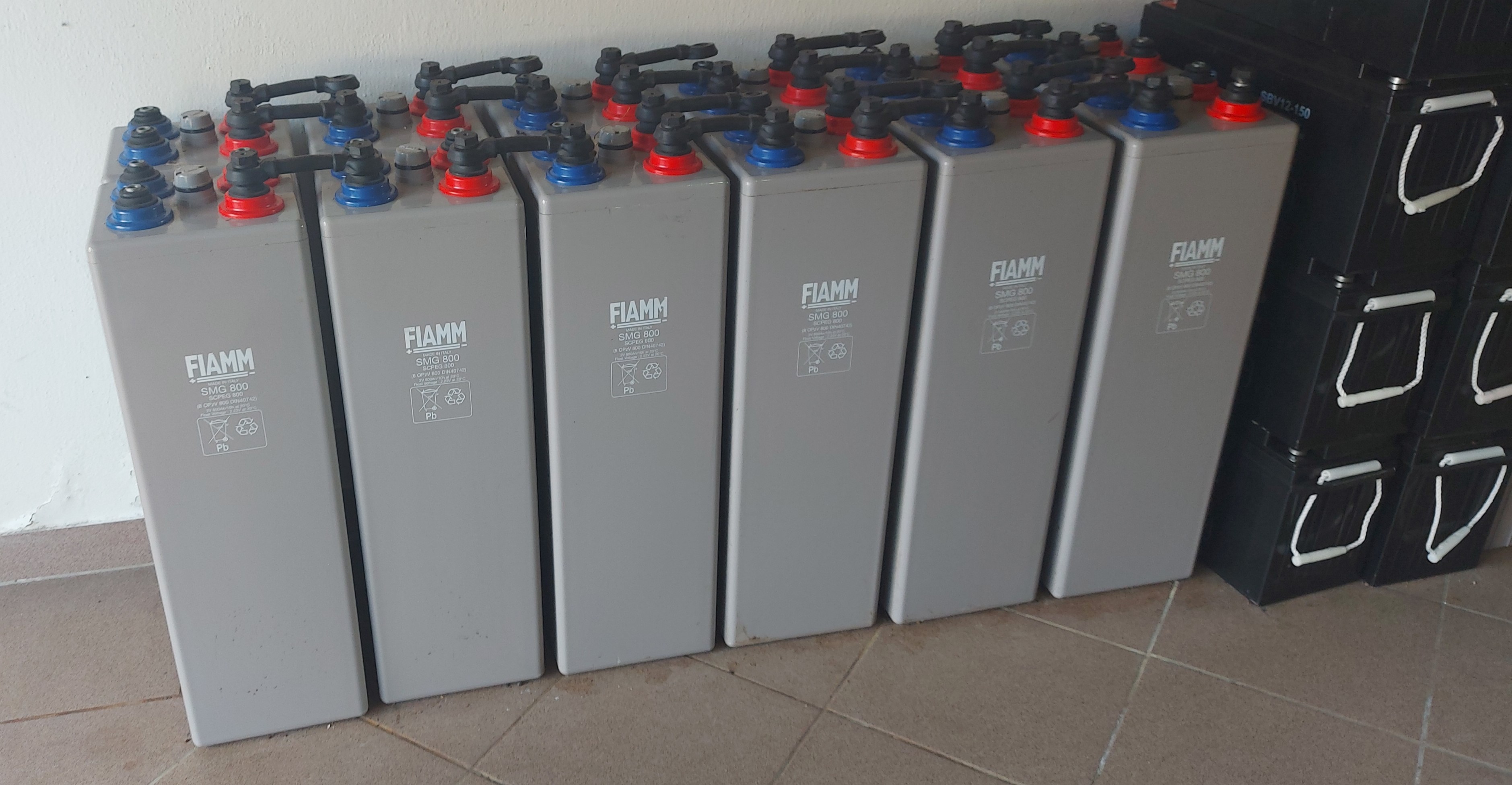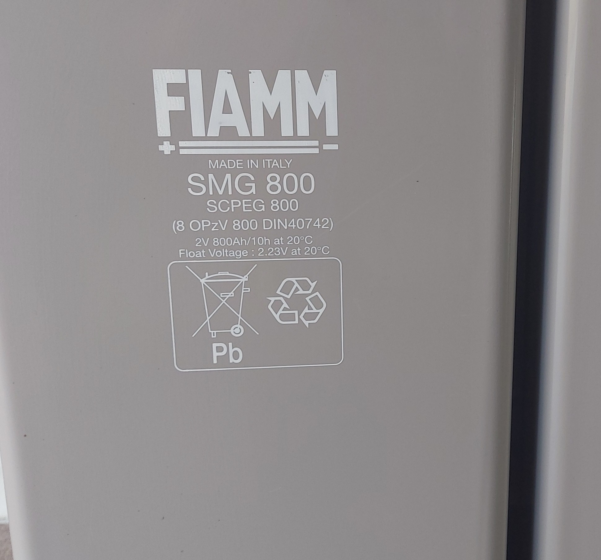 Nabízíme k prodeji starší, necyklované baterie FIAMM SMG s kapacitou 800Ah a napětím 48V. Baterie jsou ve výborném stavu, sestavené z 2V článků se zdvojenými propojkami a kompletním příslušenstvím. Reálná kapacita je cca 960Ah při vybíjecím proudu 36A, což odpovídá přibližně 46 kWh. Preferujeme prodej jako celek s osobním odběrem u Kralup nad Vltavou za cenu 46 tisíc korun.
