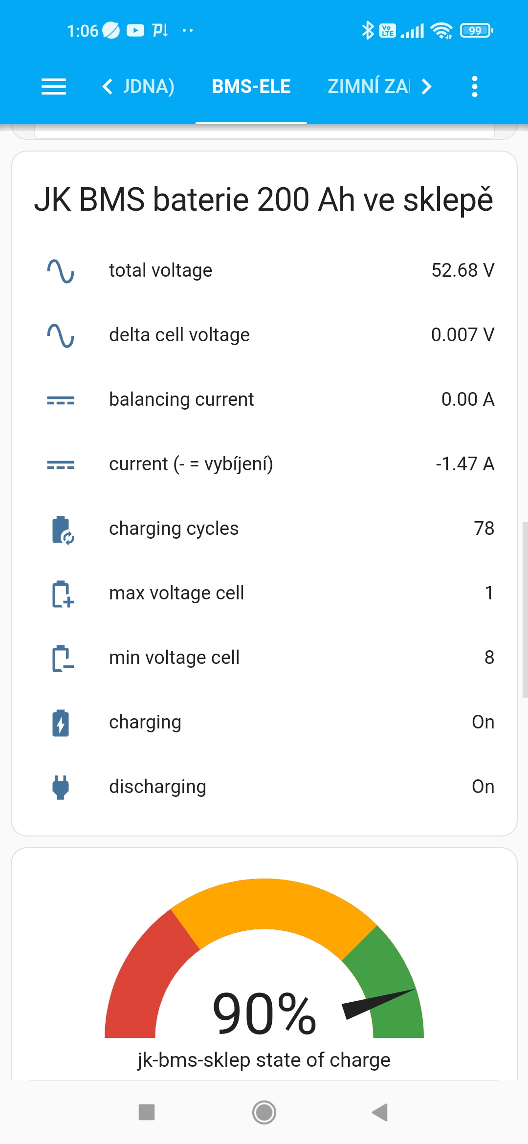 2.6. BT daného zařízení by se měla připojit k BT JK-BMS a přes WIFI posílat data do HA.