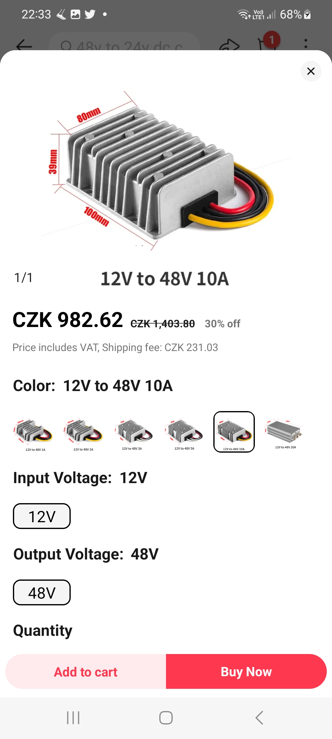Určité jsem tam viděl 40A 48V.Nebo použij měnič 12/48V