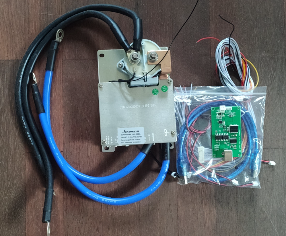 Trvalý proud 300A IN/OUT, špička 600A. Balancování 100-260mA, BT, 1x teplotní sensor, výstup 485. Včetně převodníku 485 na USB, USB kabel.