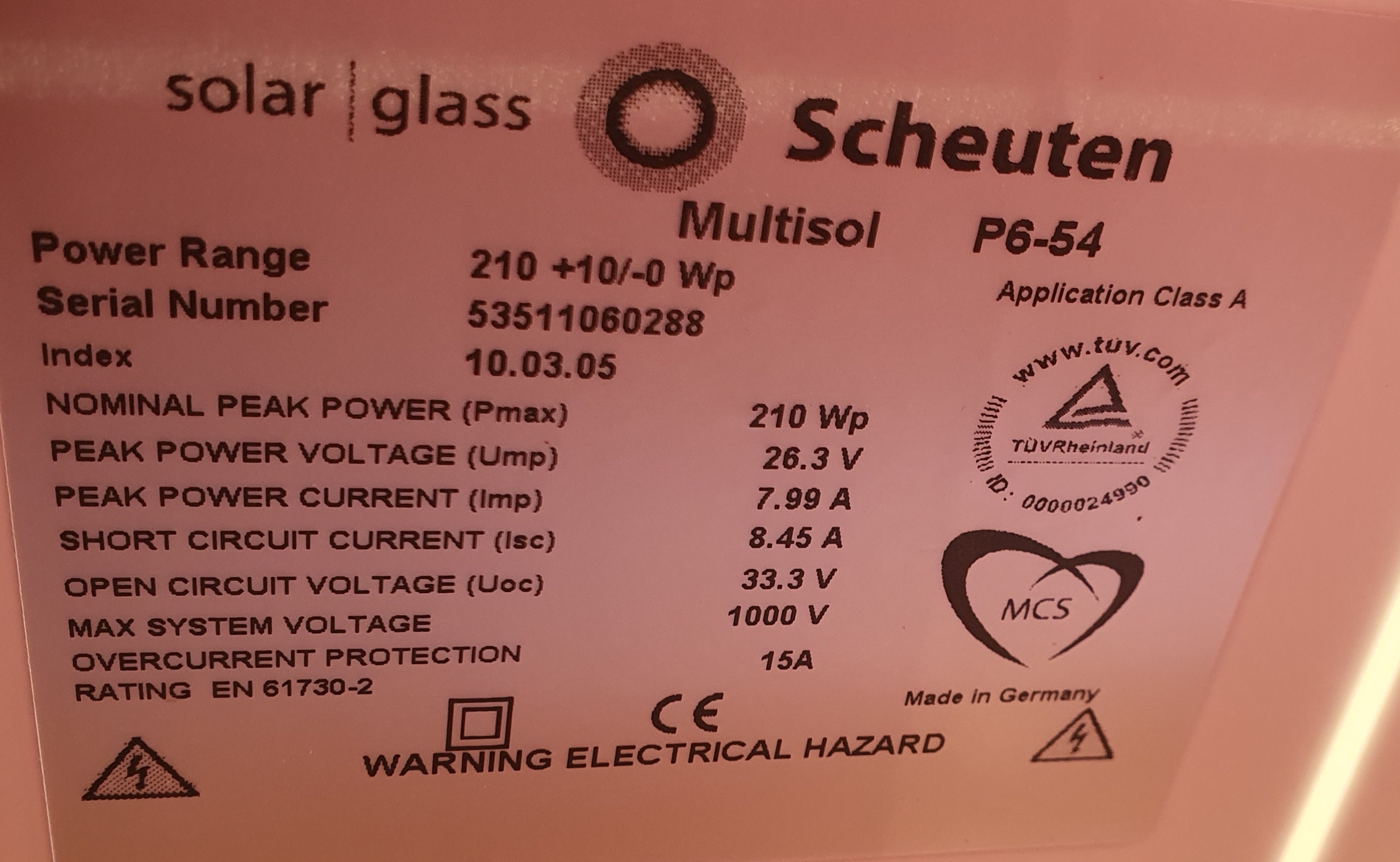 Prodám 8ks polykrystalických panelů 210W německé výroby Scheuten Solar