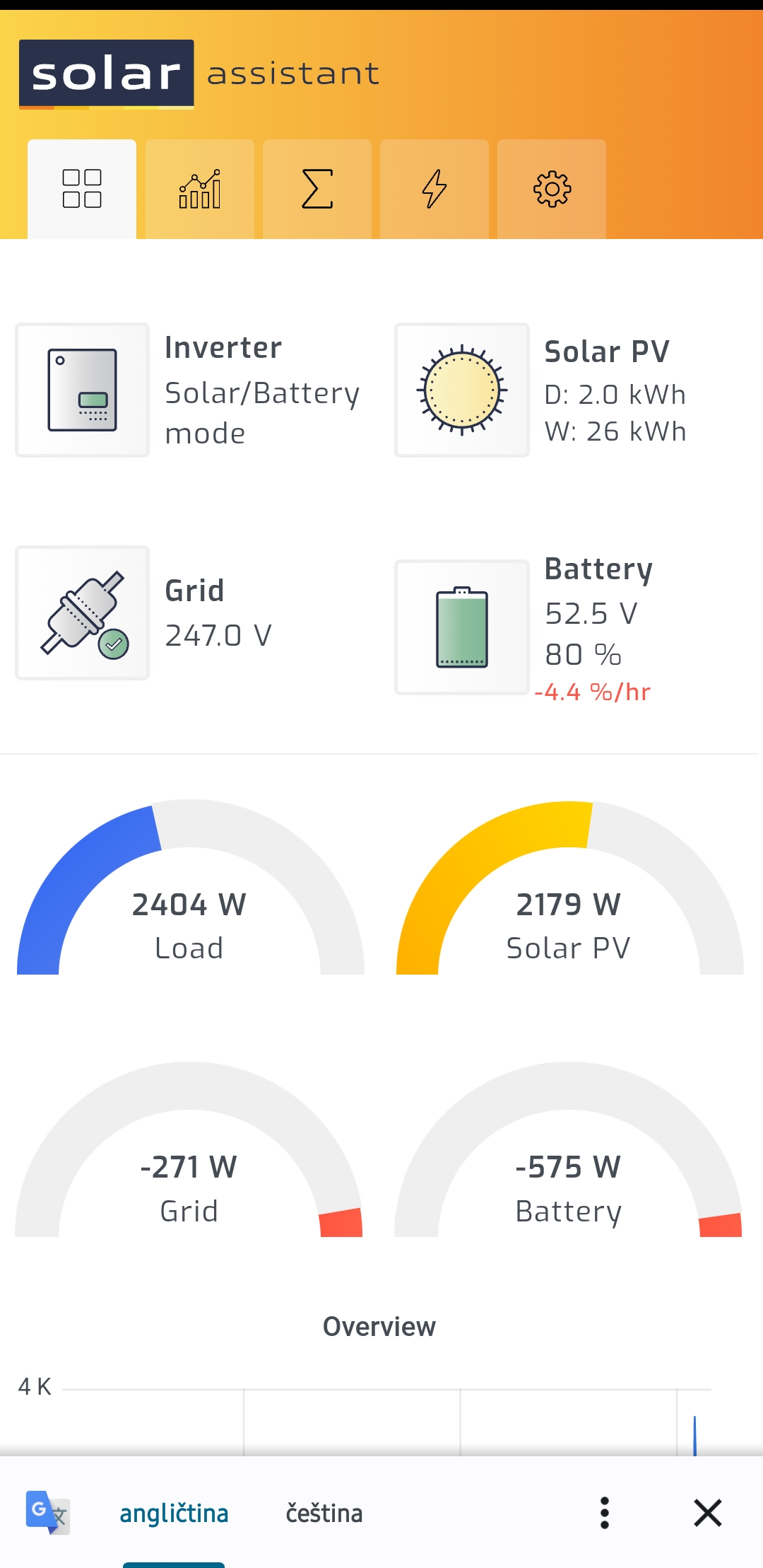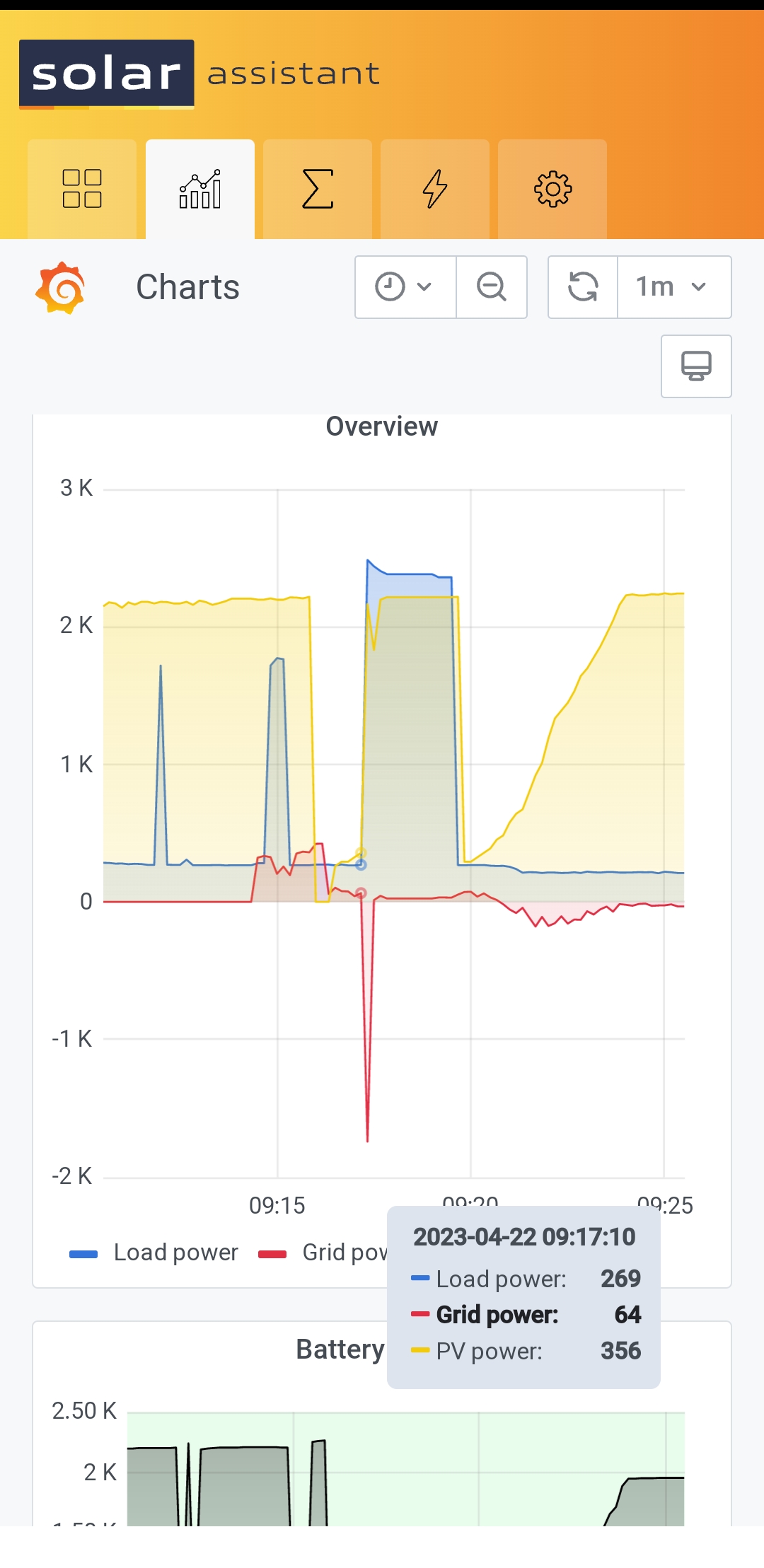 Ahoj, právě jsem aktualizoval Solar Assistant a ihned po restartu mi začal ukazovat pozitivní a negativní využití distribuce.