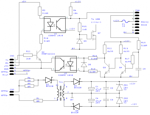 Proto právě bych rád to schémátko, ty optočleny jsou tam právěže jenom dva tak bych předpokládal že nepojede žádná komunikace, ne že přes USB to jede a přes cokoli jinýho to nejde.