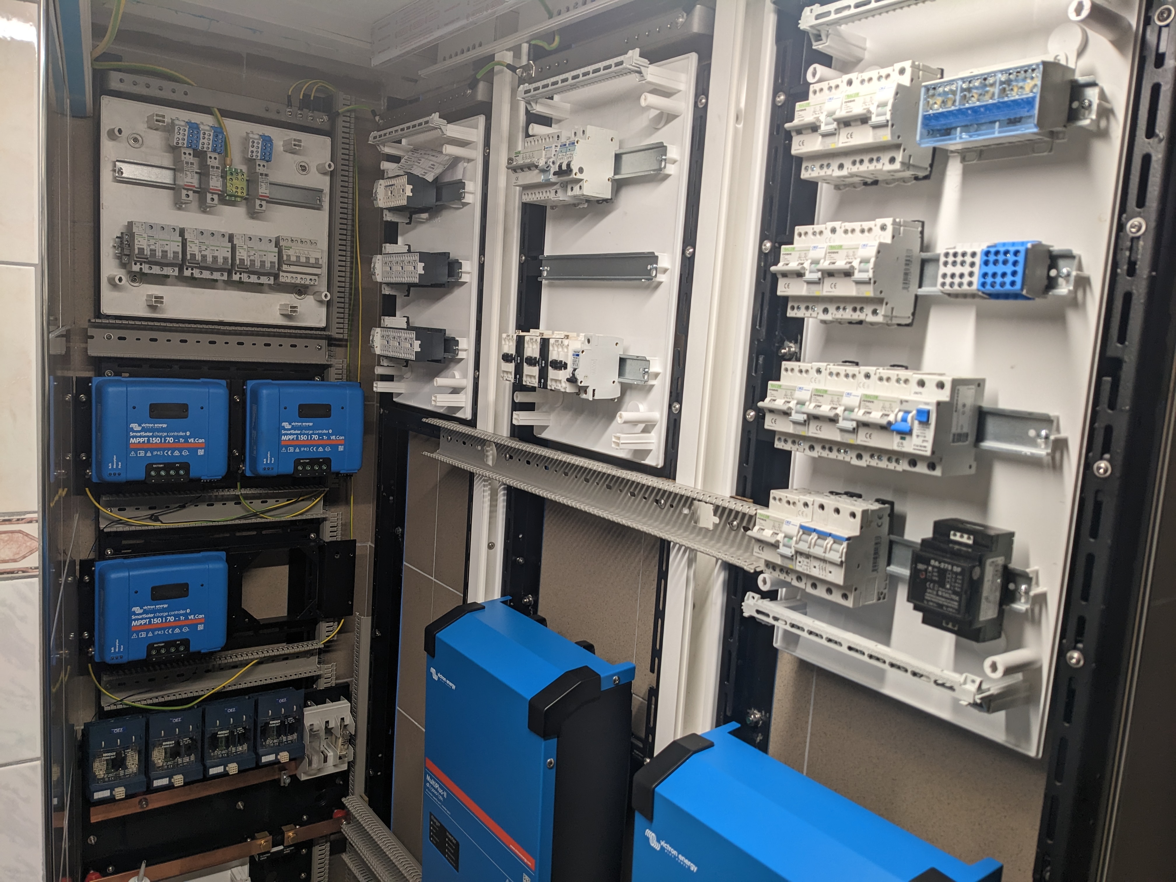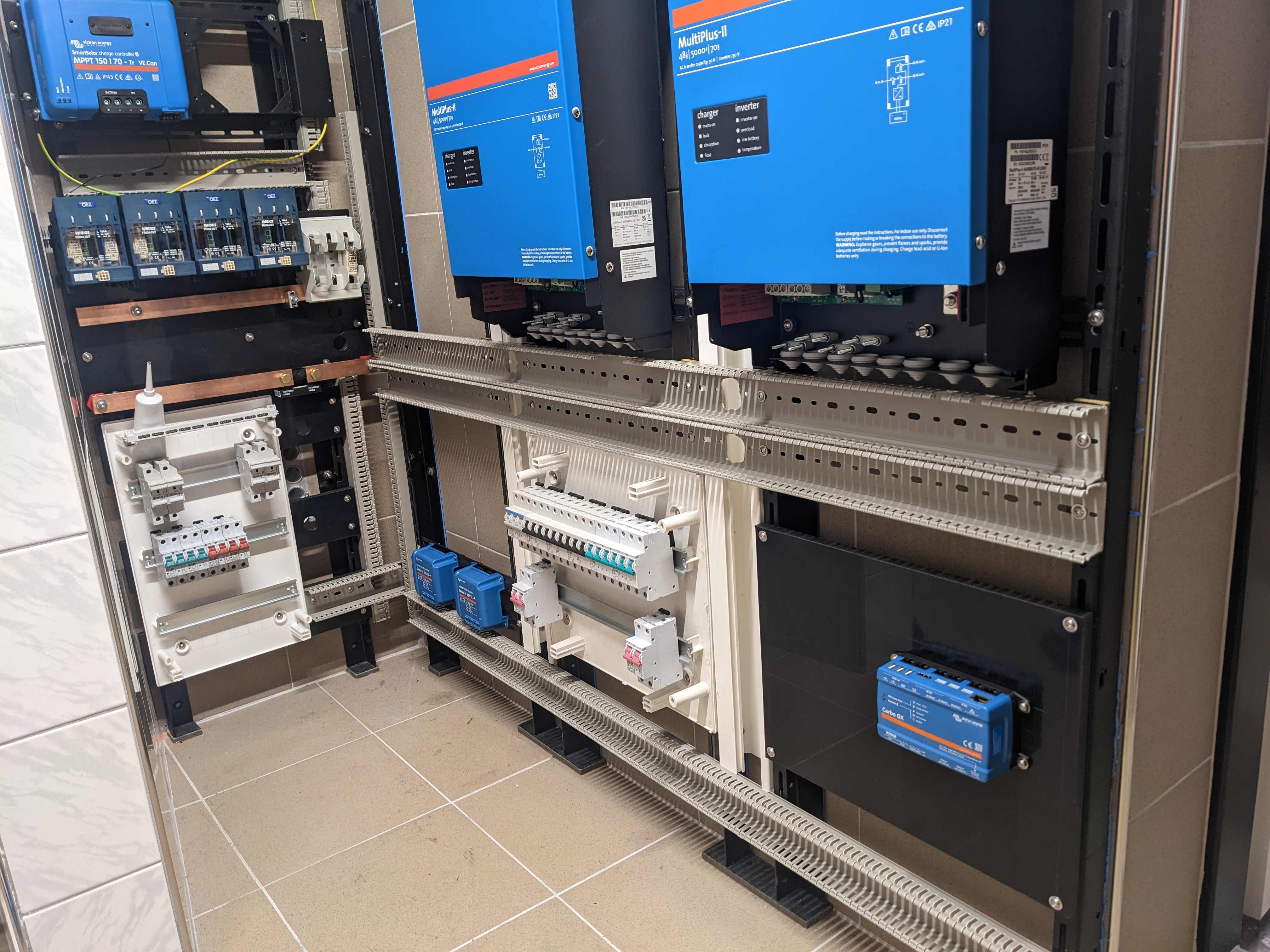 9,2kWp JV 45°, 4,6kWp JZ 45°, 2,3kWp JV 90°, 2 x Victron MP II 5kVA, 3 x SmartSolar 150/70, Smartshunt, Cerbo, 16x280Ah + 16X300Ah + 16x300Ah LiFePO4 + 3xJK BMS.