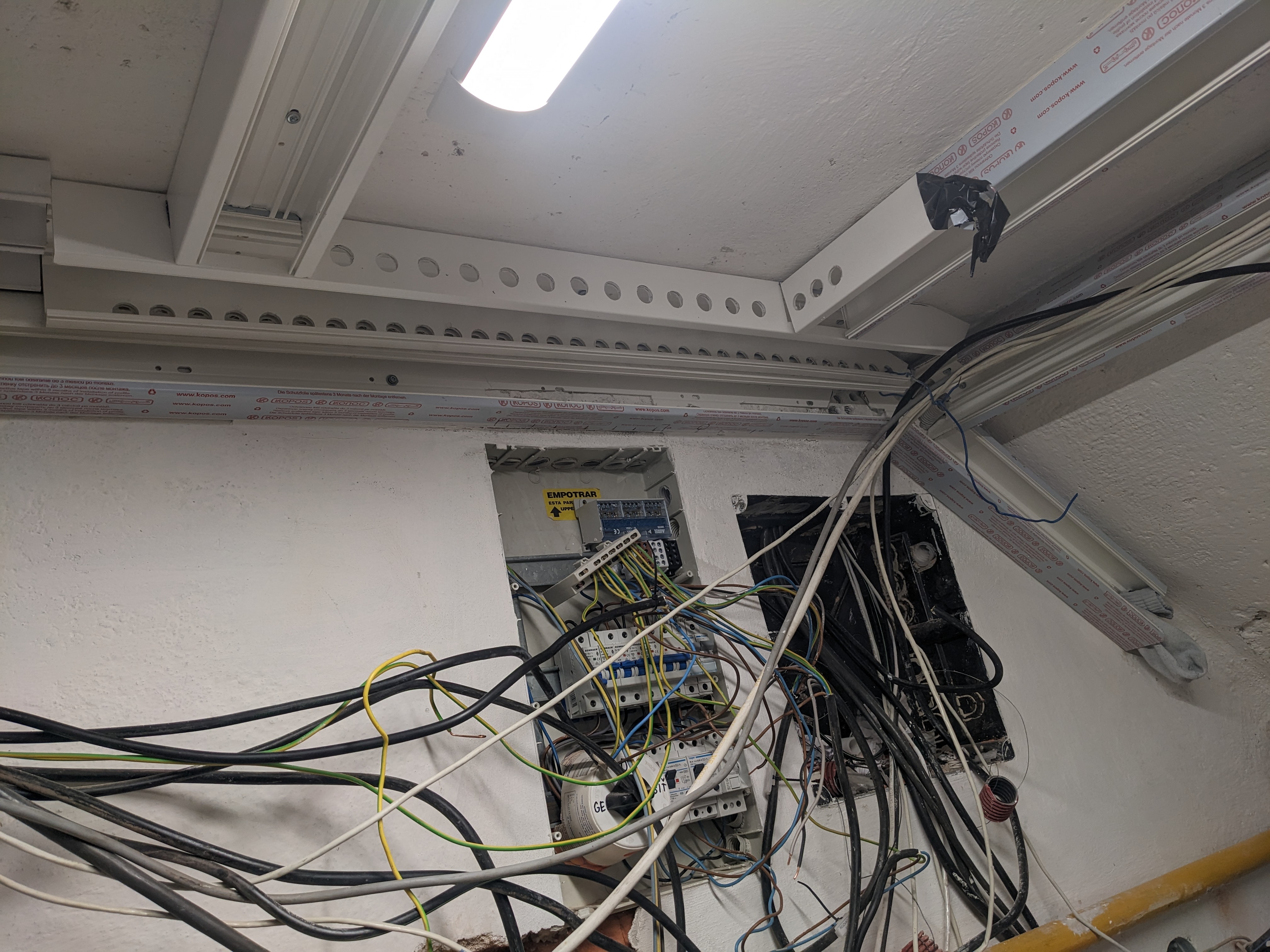 První kombibox pevně visí a vytrubkovaná trasa k prvnímu stringu.