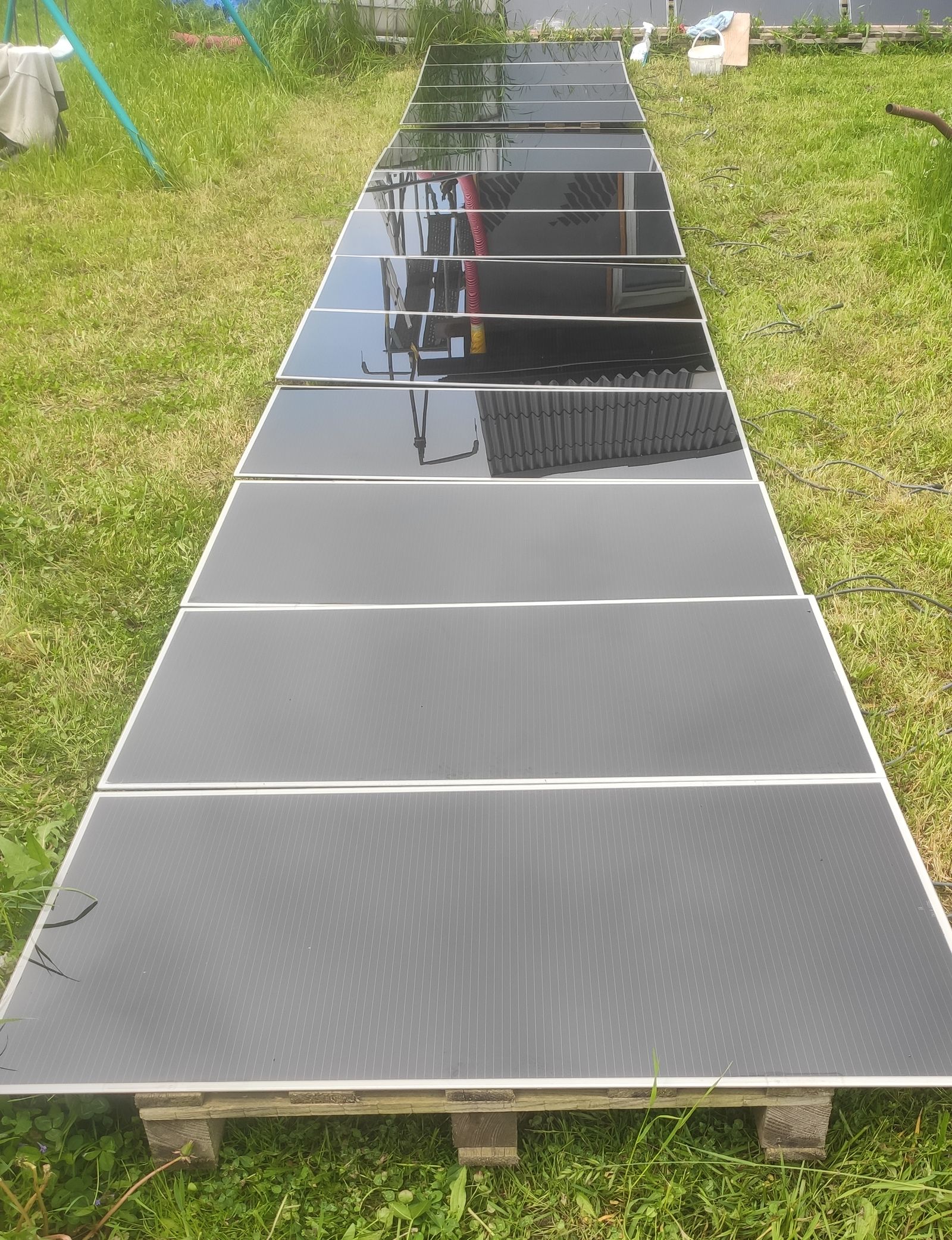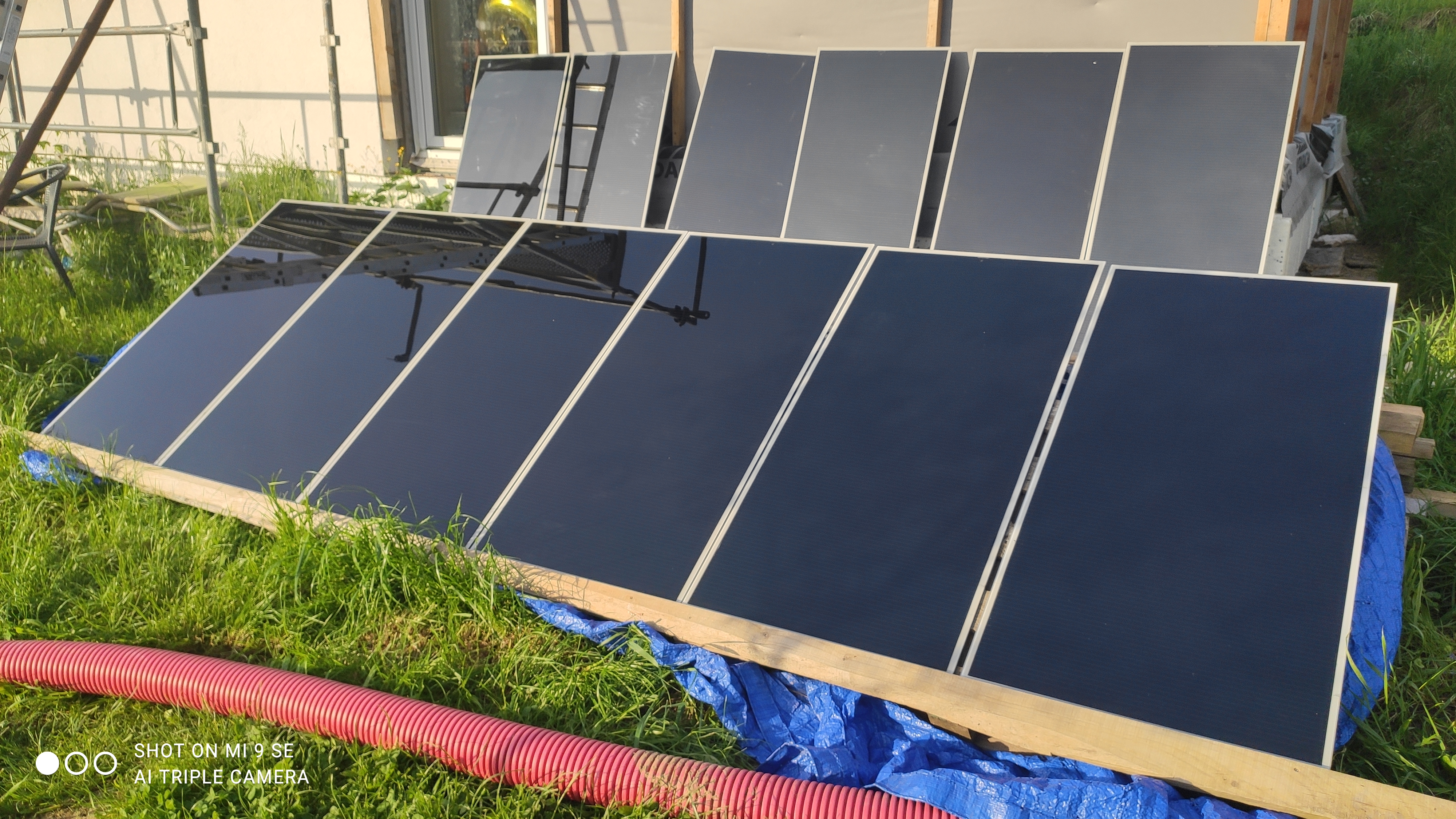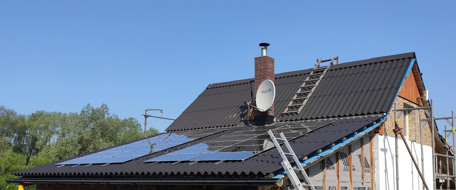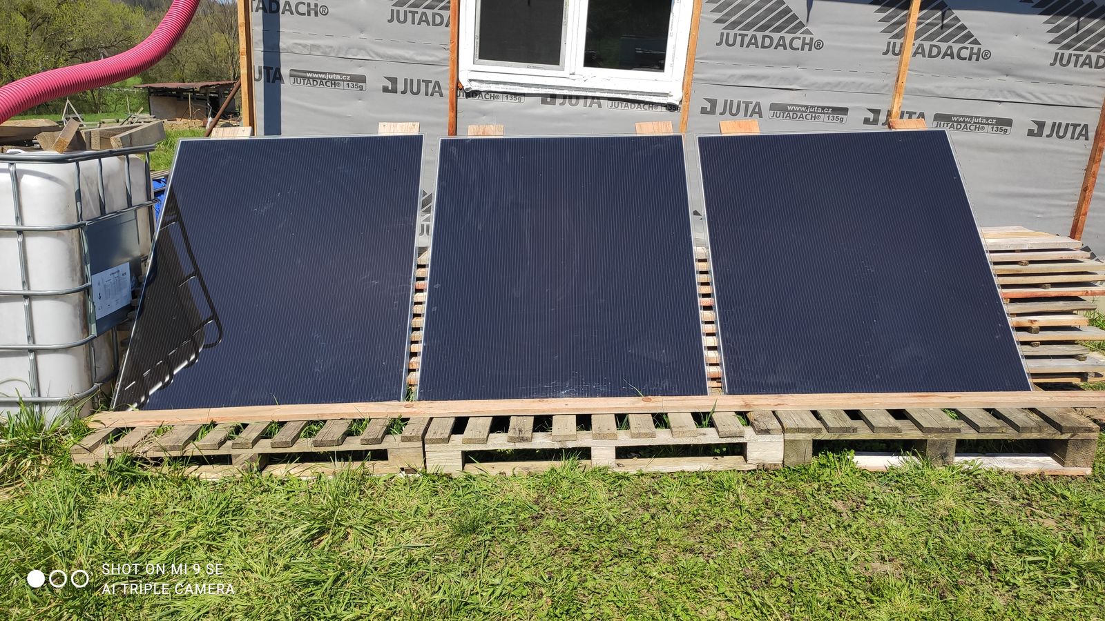 Tak panely naší malé ostrovní SkyFVE verze 1.0 jsou na střeše ... Směr poledne letního času ...