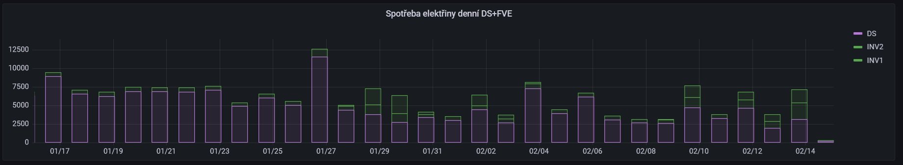 Tak včera nám naše malá SkyFVE v1 nadělila Valentýnský dárek. Letos podruhé porazila ČEZ. A vůbec po tom co byla přepnutá na druhý stupeň (k SmartHome, IT a světlům přibyla i kombi chladnička a vytěžování do bojleru) začíná svádět s ČEZem rovnocennější souboje. Abych řekl pravdu mile mne to překvapilo. Čekal jsem aktivnější zapojení takto malé FVE až někdy v březnu.