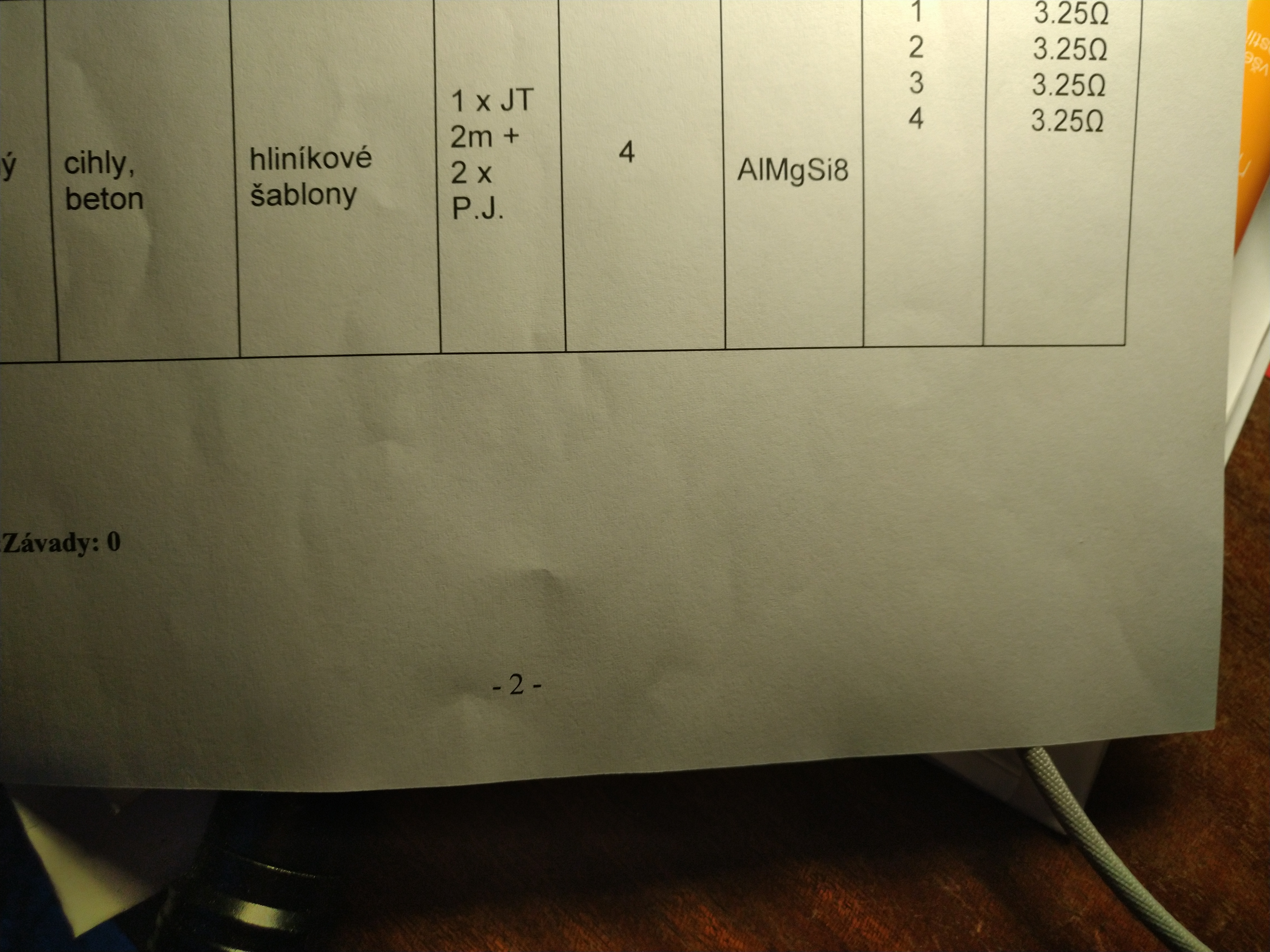 Včera mi hromosvodáři dodělali "vršek" hromosvodu a při měření zemního odporu během revize vyšla u všech čtyřech svodů hodnota 3,25 ohmů.