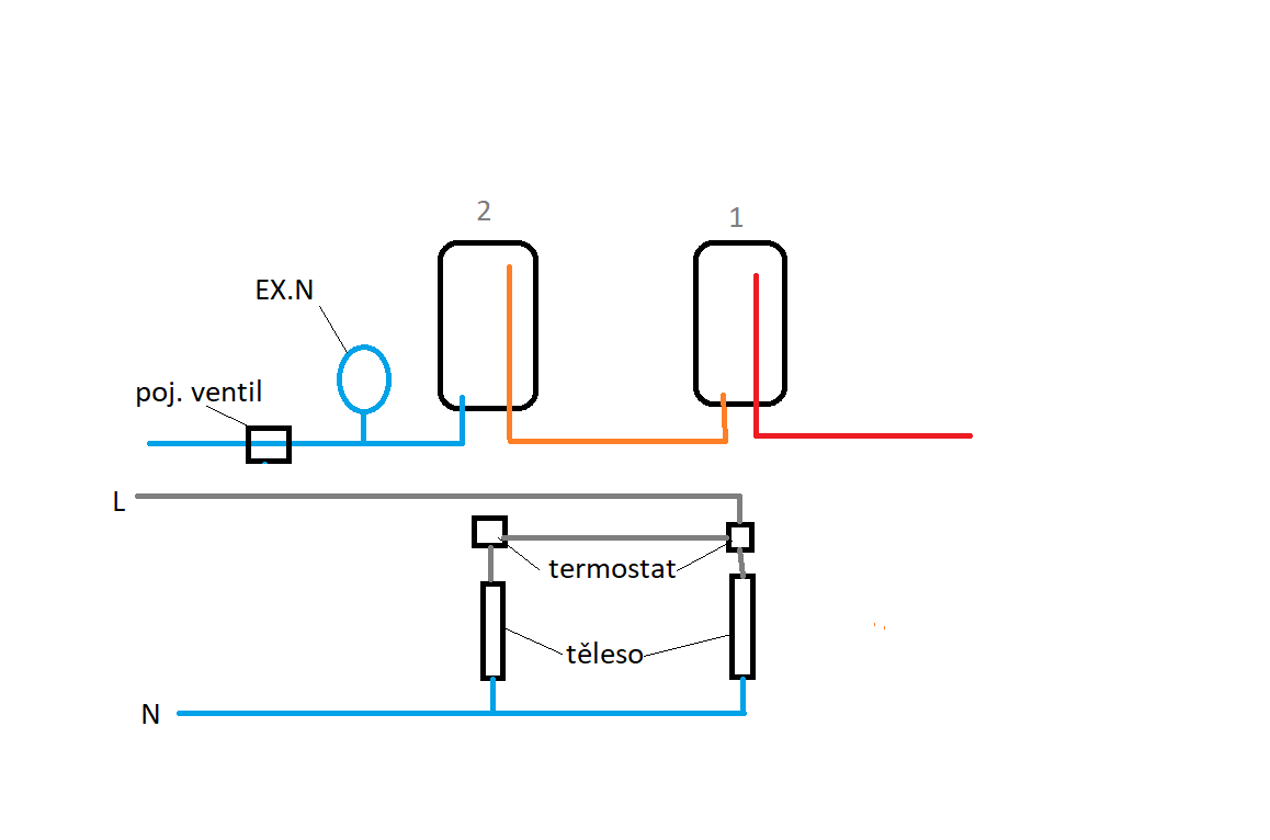 K tomu druhému druhému poj. ventilu. Nějaký kulový ventil mezi bojlery nemá význam a kdyby tam byl tak bych sundal páčku. Poj. ventil zvládne i bojler s 500L A k tomu vyřazení zp. ventilu pozor na to. TUV není of. pitná a při nějaké havárii vodovodního řadu a otevření výtoku teplé vody vyteče voda z bojleru do řadu a hrozí že po opětovném natlakování řadu tu vodu bude někdo pít. Další nebezpečí že když je bojler bez vody a sepne se těleso tak máte asi po něm. Také berte v potaz cenu poj. ventilu která je asi 700 Kč. K té ex. nádobě, je to úspora vody ale když ji budete zachytávat třeba do kropice tak s tím zalejete kytky v bytě. Ono je také dobré mít přehled jestli ventil nekape protože jakmile ho napojíte nějakou neprůhlednou hadicí na odpad tak při netěsnosti poj. ventilu vám můžou vytéct 100l vody za den do odpadu.