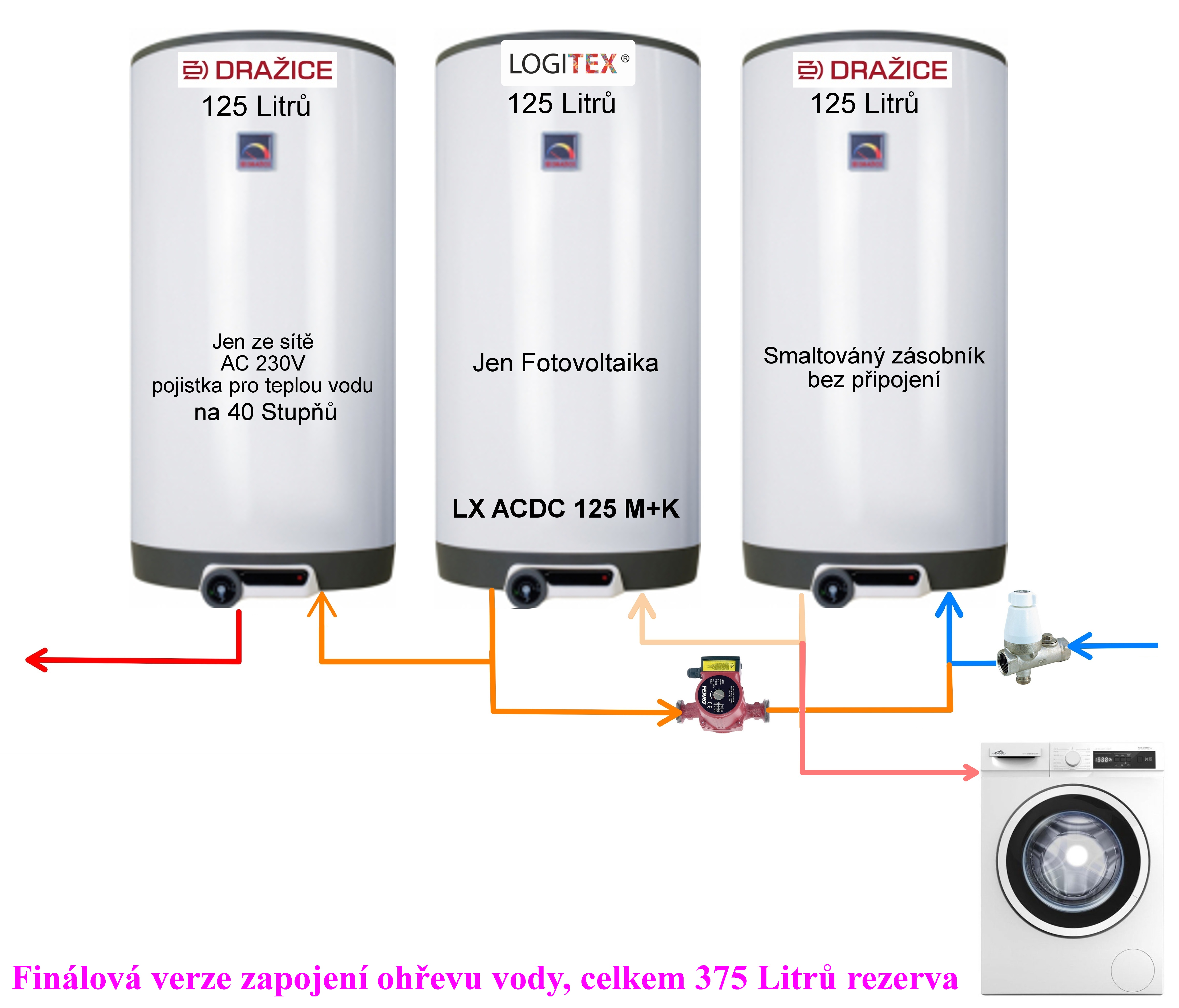 4-5 měsíců to utáhne i pračku s termostatickým ventilem na 40 Stupňů a máme k dispozici 3 x 125 Litrů vody.