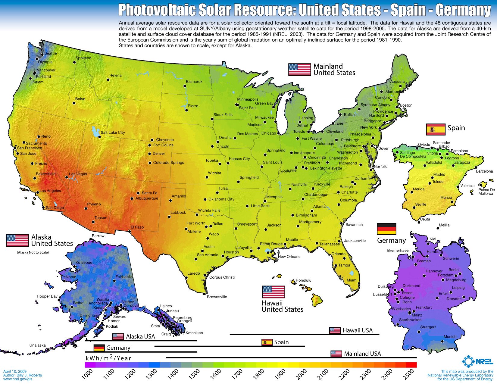 Co musím uznat, tak jakékoliv olověné baterie velmi dobře fungují v USA! A to proto, že tamní sluneční podmínky jsou na úrovni špaňelska (1600kWh/m2)- na severu USA, na jihu v kalifornii dokonce na úrovni Afriky - tunisu (2500kWh/m2)!