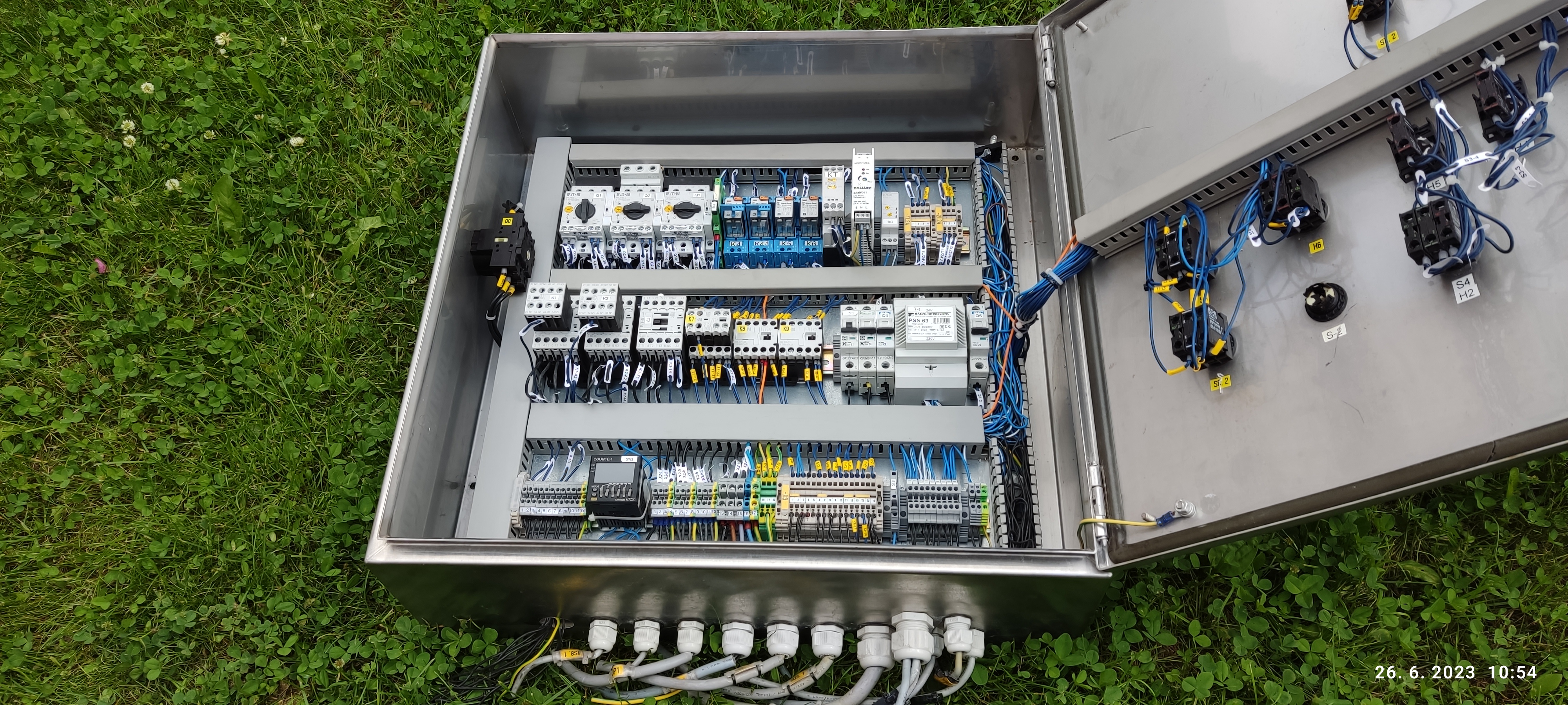 Nabízíme k prodeji nerezový rozvadzač o rozměrech 60x60x22 cm s gumovým těsněním ve dveřích, kompletně osazený kvalitními komponenty značek Eaton, Omron, Finder a dalšími. Rozvadzač je funkční, váží cca 30 kg a je vhodný pro modernizaci výrobních linek či průmyslové využití. Cena je 250–300 € za kus, lokalita Slovensko, okr. Námestovo, bez záruky.