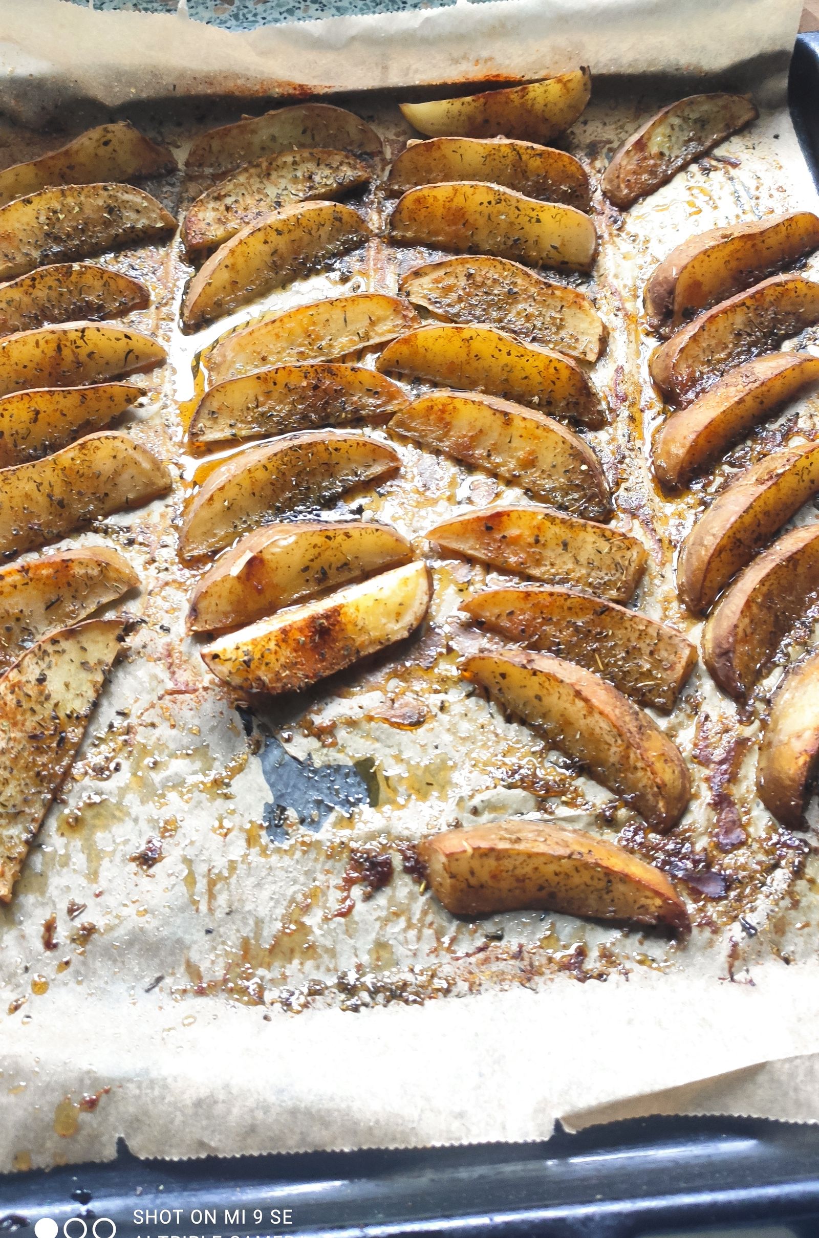První dopolední test - opékané brambory jako příloha ke steaku z krkovičky s pepřovou omáčkou