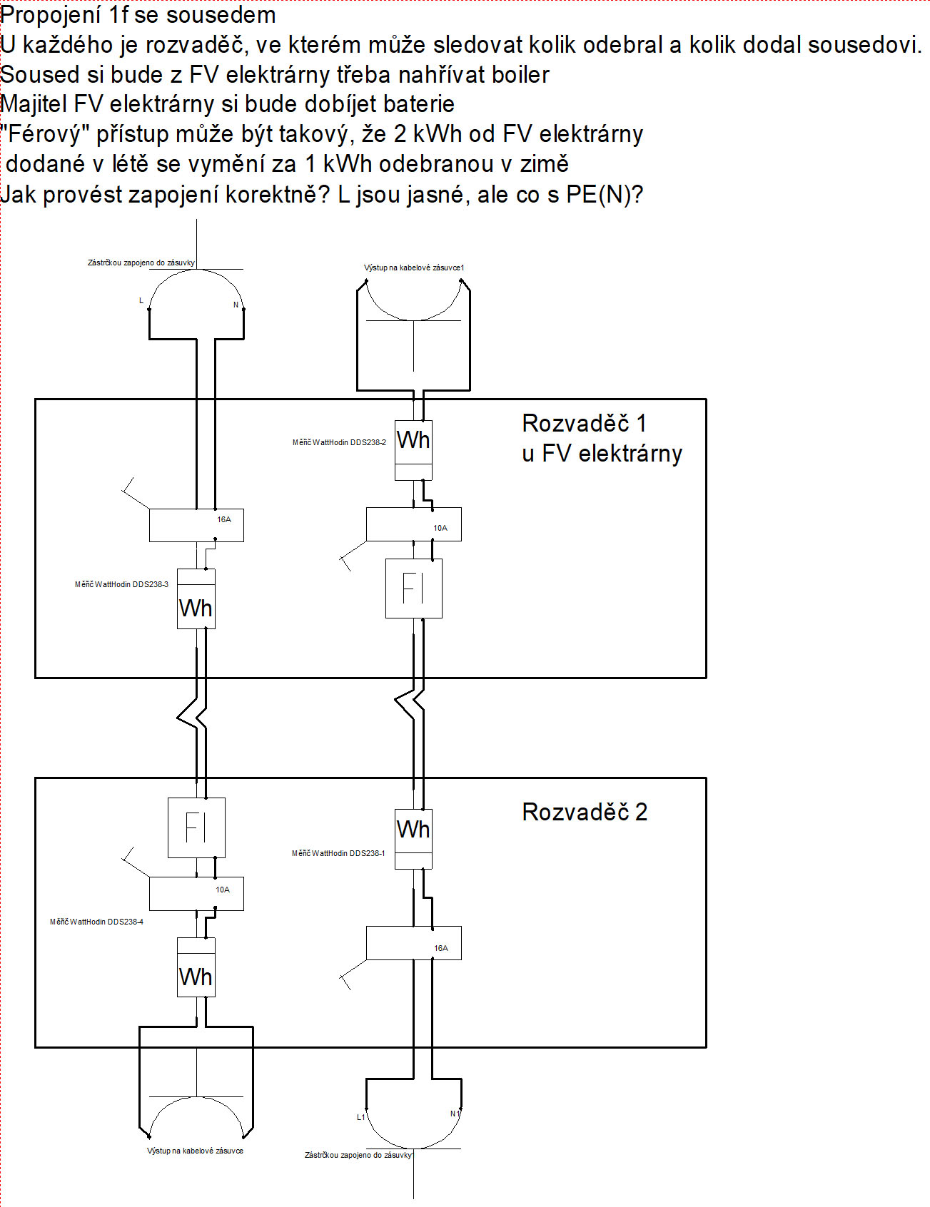 Snad abych to přiblížil i ekonomicky. Přišlo mi roční vyúčtování cca 18 000,-Kč za nějakých 2 500 kWh. Pokud bych si toto množství od souseda vzal a na oplátku mu v létě dodal dvojnásobek - tedy 5 000 kWh, tak každý z nás těch 18 000,- Kč ušetří. I když si vezmu, že ty rozvaděče a kabeláž budou znamenat jednorázový nákup za cca 5 000,- Kč, tak to vypadá i ekonomicky zajímavě.