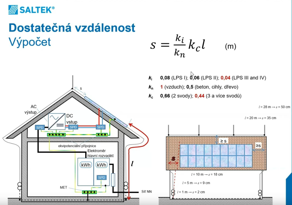 Inak to "l" podla vzorca na vypocet "s" mam na samotnom vrchu strechy 5+1+4 to je samotna maximalna vyska strechy, ak idem po bleskozvode od zeme (5m), cez ohyb pri presahu strechy (1m), potom na streche/skridle (4m), a potom do strechu strechy, kam az siaha FV to bude +8metrov, kedze FV ma 7 metrov, resp sirka strechy je 13metrov.. Takze tam sa to asi pocita +6.5m, ale nech je tam rezerva v prospech bezpecnosti.