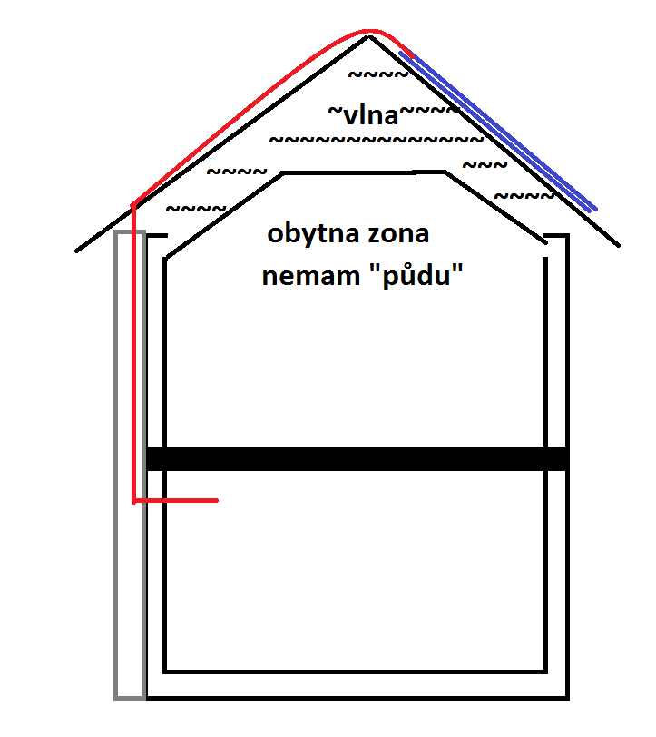 glottis, sice by som musel rozobrat kus strechy, ale nemalo by to byt nemozne. Ano je to taska Bramac, pod tym je lata kontralata, pod tym je positna folia, ona ma urcity preklad, cize malo by byt mozne "vsunut" kabel pod ni, bez toho, aby som ju poskodil, ale bude zaujimave trafit sa na druhu stranu strechy aby som trafil toto prekladanie poistnej folie, aby som ju neposkodil. Tahat tento kabel potom pod taskami je mozne, lebo je tam kontralatovy system, takze je tam 4cm priestoru. Narocnejsie to bude potom ist smerom "dole" to uz asi budem musiet prerezat poistnu foliu, ale malo by to byt mozne dodatocne opravit.
