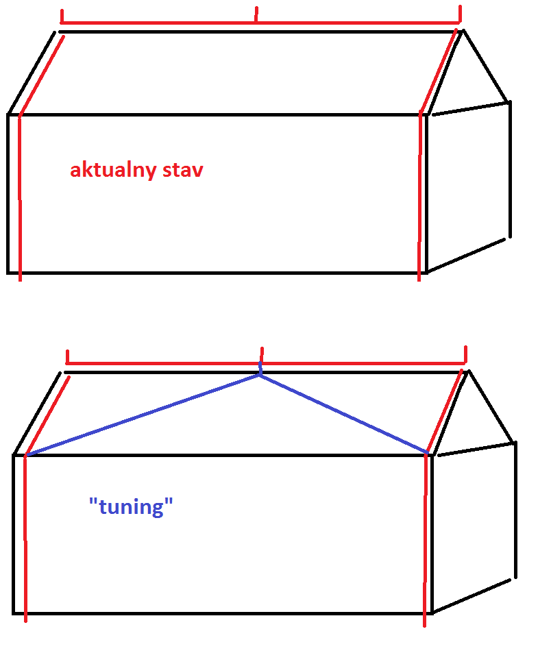 Inak by ma zaujimalo, ak by som urobil dodatocne prepojenie bleskozvodu, asi takto a iba na jednej strane strechy, tam kde panel nebude, tj, zapad, panel je na vychod.