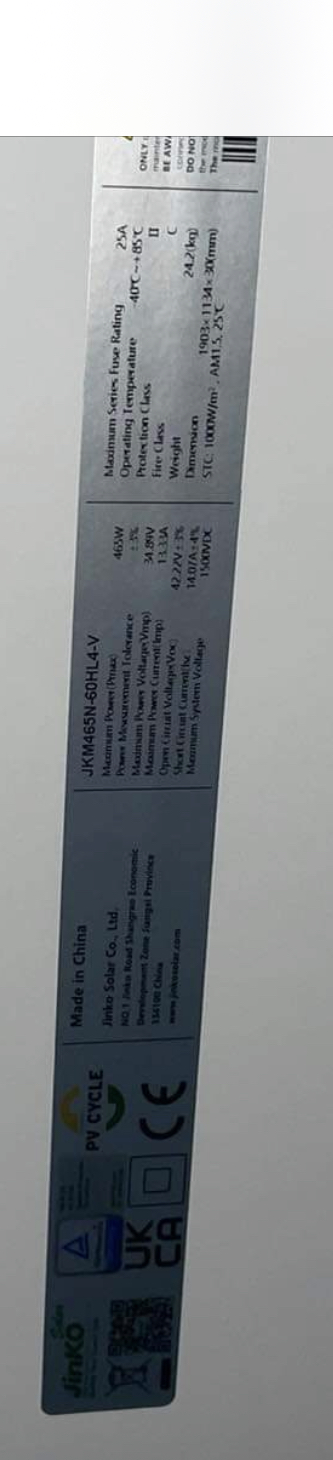 Dobry den , prodam 20kusu panelu Jinko 465w . Panely jsou uplne nove . Cena za kus 2600 tj 5,6 kc/watt.
