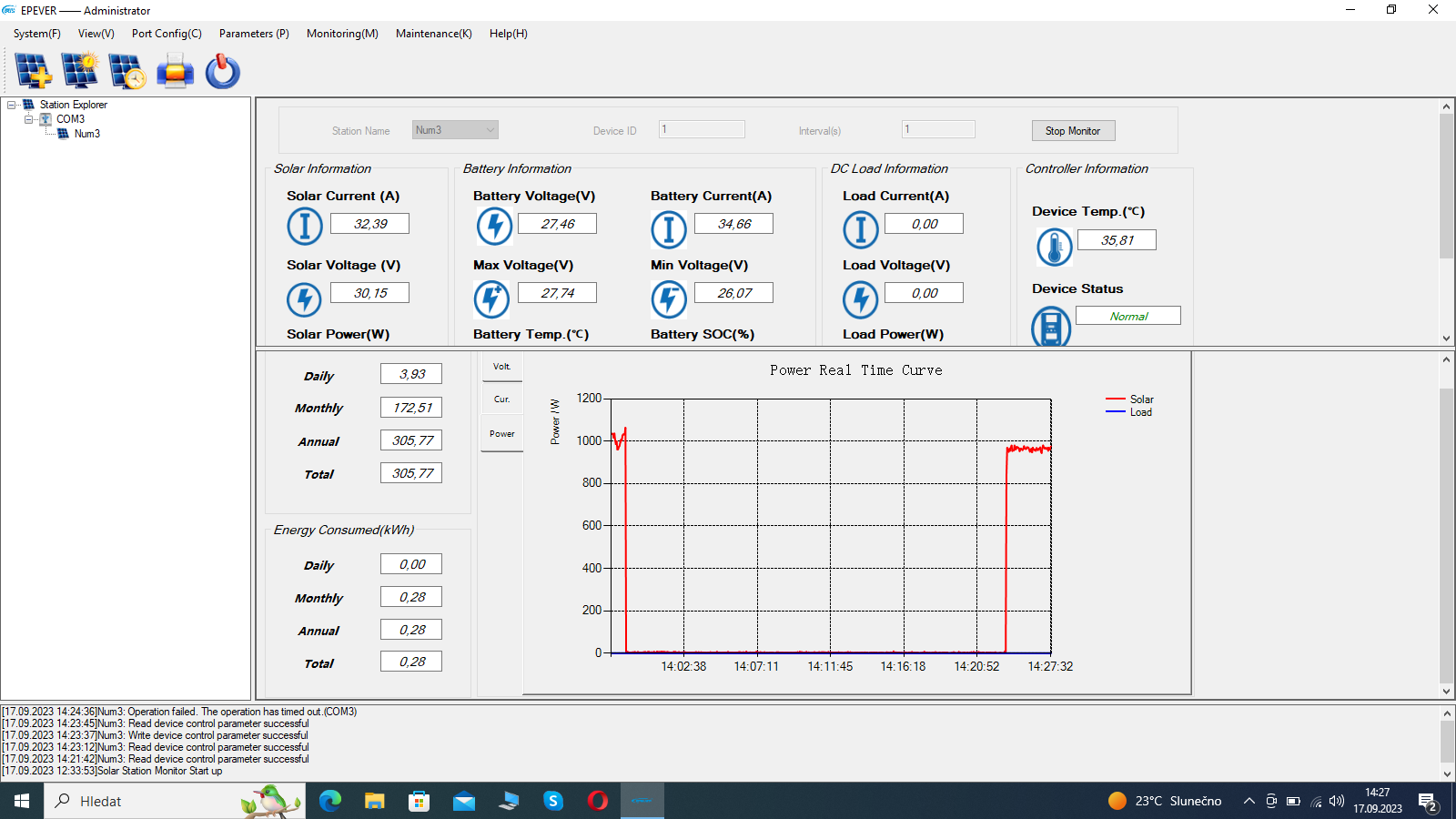 Neresetoval sem regulátor, ale pouze odpojil a připojil panely a běžel dál. Vydržel 20 minut a stalo se, že na chvilku vypnul a pak zase zapnul. Ale běžel opět jen chvíli než vypadl. Jako kdyby něco uvnitř regulátoru najednou odpojilo panely a zřejmě to má souvislost s teplotou. Začne to zlobit až po nějaké době
