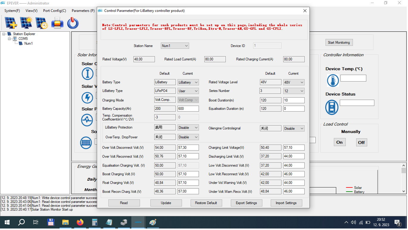 nemas ktomu bluetooth?cez to sa to nastavuje lepsie ako cez pc a ponukne ti v apke viacej bateriek na vyber a je to tam prehladnejsie.. myslym ze mas vsetky hodnoty nastavene na jednu a to 57,10V co nieje dobre.v type baterie zvol user