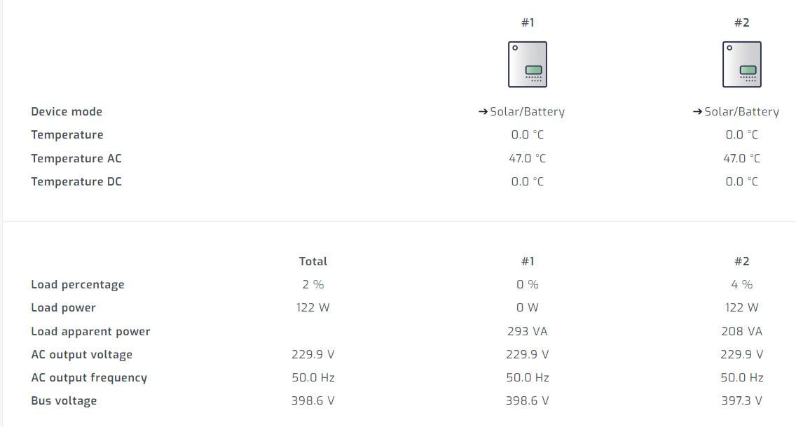MUST 3KW 80A MPPT 24V/ 3,75kWp stringy 5s3P 200wp + 5s1P 150wp. 2 měnič MUST 3KW 80A MPPT 24V 6370Wp stringy 2S4P 400wp bifacial + 2S1P 410wp + 2S3P 395wp Baterie 28KWh lifepo4 (4X 8S 280Ah EVE), Celek tedy 10120Wp