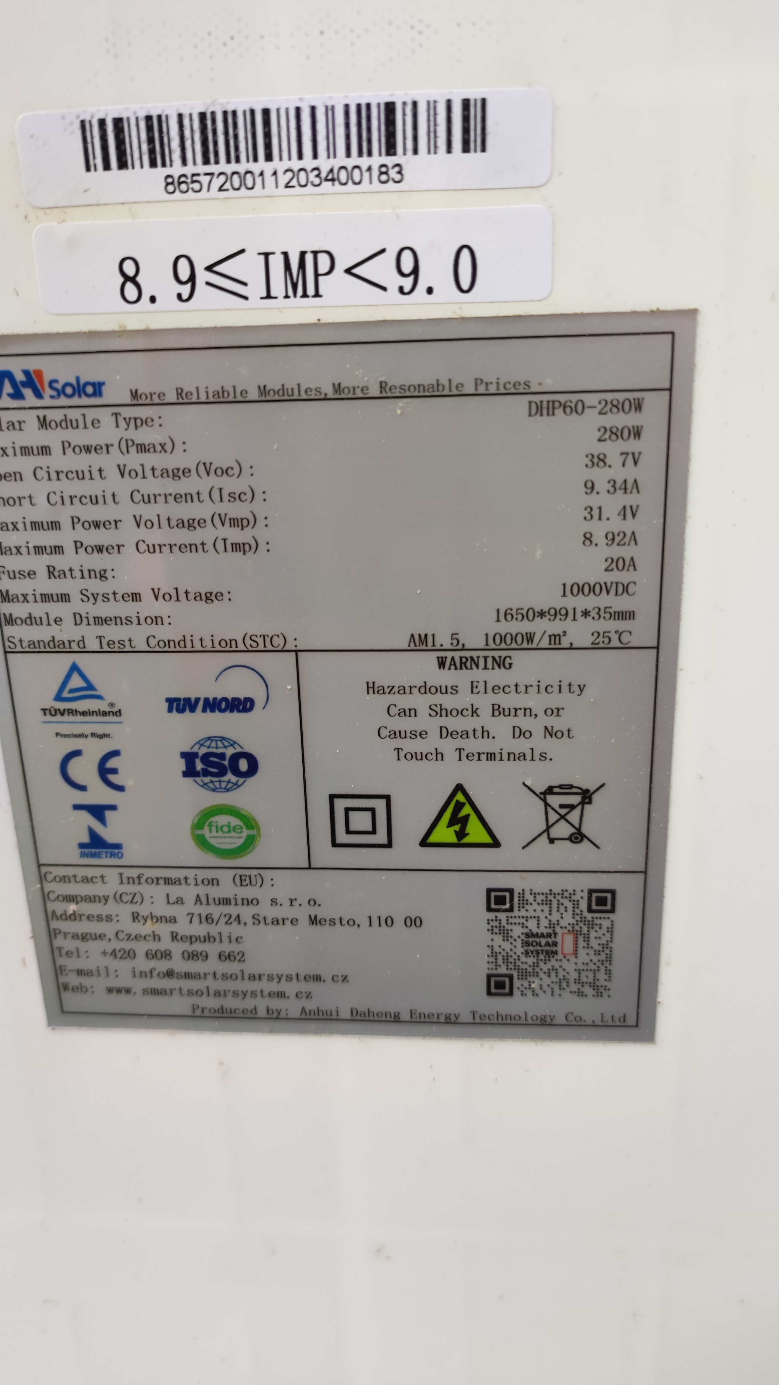 Nabízíme k prodeji solární panely o výkonu 280w značek Amerisolar a DAH solar. Cena za kus se pohybuje kolem 1800 až 2000 Kč, možnost výhodného odběru všech panelů najednou. Panely jsou vhodné pro instalaci do domácích i komerčních solárních systémů, což pomáhá snížit náklady na energii a podpořit ekologii.