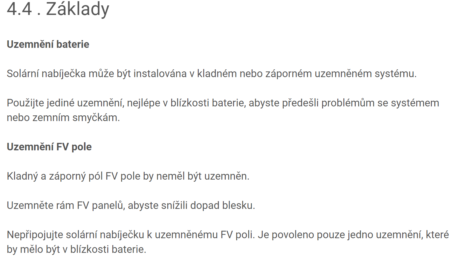 A sám Victron uzemění jednoho pólu akumulátoru předepisuje.
