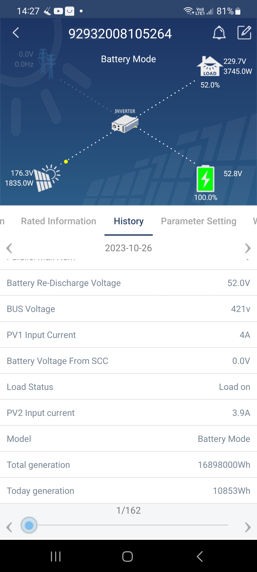 cize vyzera to tak, ze ked tych 200V je potrebnych na rozbeh axperta, tak teraz ked je menej slnka je vacsinu casu vypnuty a nevytvara energiu, kdezto MPTT Epever ju vytvara stale...aj v tychto horsich podmienkach, kedze tam je 200 max.. a zle som si to pamatal, ja tam mam z panelov 160V, nie 200V, takze tu bude hlavny problem...