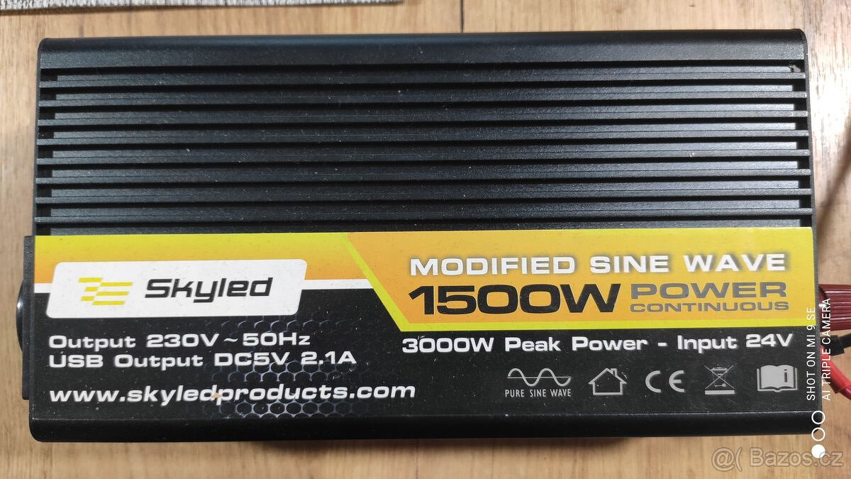 Nabízím k prodeji měnič napětí Skyled 3000 s výkonem 1500W a vstupním napětím 24V, výstup 230V s modifikovanou sinusovou vlnou. Měnič je vhodný pro různé aplikace vyžadující stabilní napájení a disponuje USB portem. Cena je 990 Kč, zařízení je již prodáno, ale informace může být užitečná pro zájemce o podobné produkty.