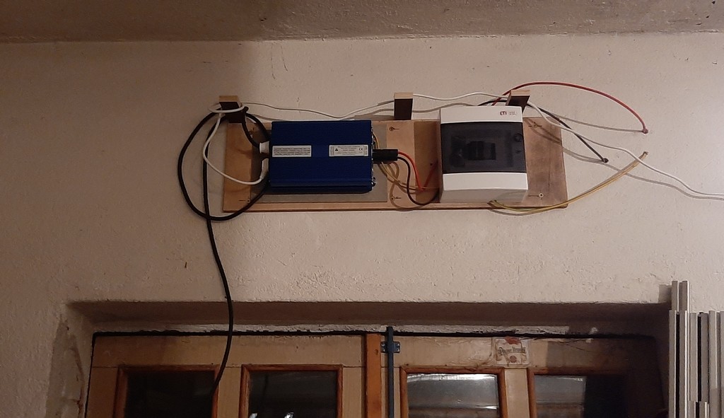 https://www.youtube.com/watch?v=5sX43wE ... nnel=TO220 Jediné vhodné místo pro umístnění měniče mě vyšlo nad vraty, takže k obsluze je třeba žebřík. Na DC straně je pojistný odpínač k baterii 16A a přepěťová ochrana 500V DC. Uzemění měniče a přepěťovky jsem udělal přes dvě zemnící tyče zemnícím kabelem 10mm2. Elektrické zapojení bojleru jsem si udělal sám, ale nechal jsem si to zkontrolovat elektrikářem v důchodu. Protože když jsem chtěl zapojit čerta, tak koukám, jen dva dráty a zemnící kabel nikde. Uzemění u starého bojleru bylo realizováno měděným drátem obtočeným na závěsný šroub a propojený se šroubem trčícím ze zdi. Holt 50let starý barák.