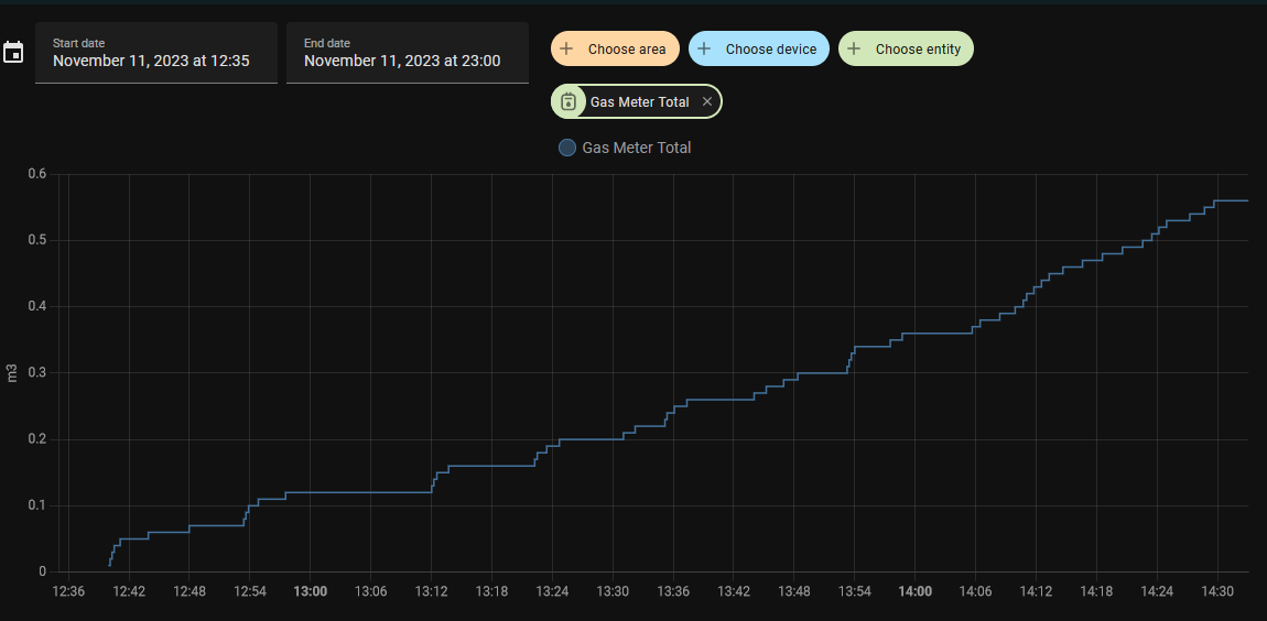 Mám to, tedy měl jsem to na Tasmotě a protože jsem měl snímač jen přilepený leukoplastí, nějako praskl a nový jsem tam ještě nedal. Přes léto až do teď jsem spotřeboval jen 20 kubíků, tak to zase tak nevadí, dokud nezačnu topit.