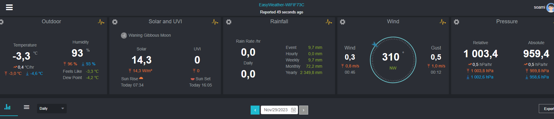 Jinak největší síť je asi fine offset/ecowitt - tyhle meteostanice má dnes spousta lidí (pod různými názvy). Cloud je www.ecowitt.net pro zobrazení je třeba se zaregistrovat. Pro zobrazení není nutné meteostanici vlastnit.