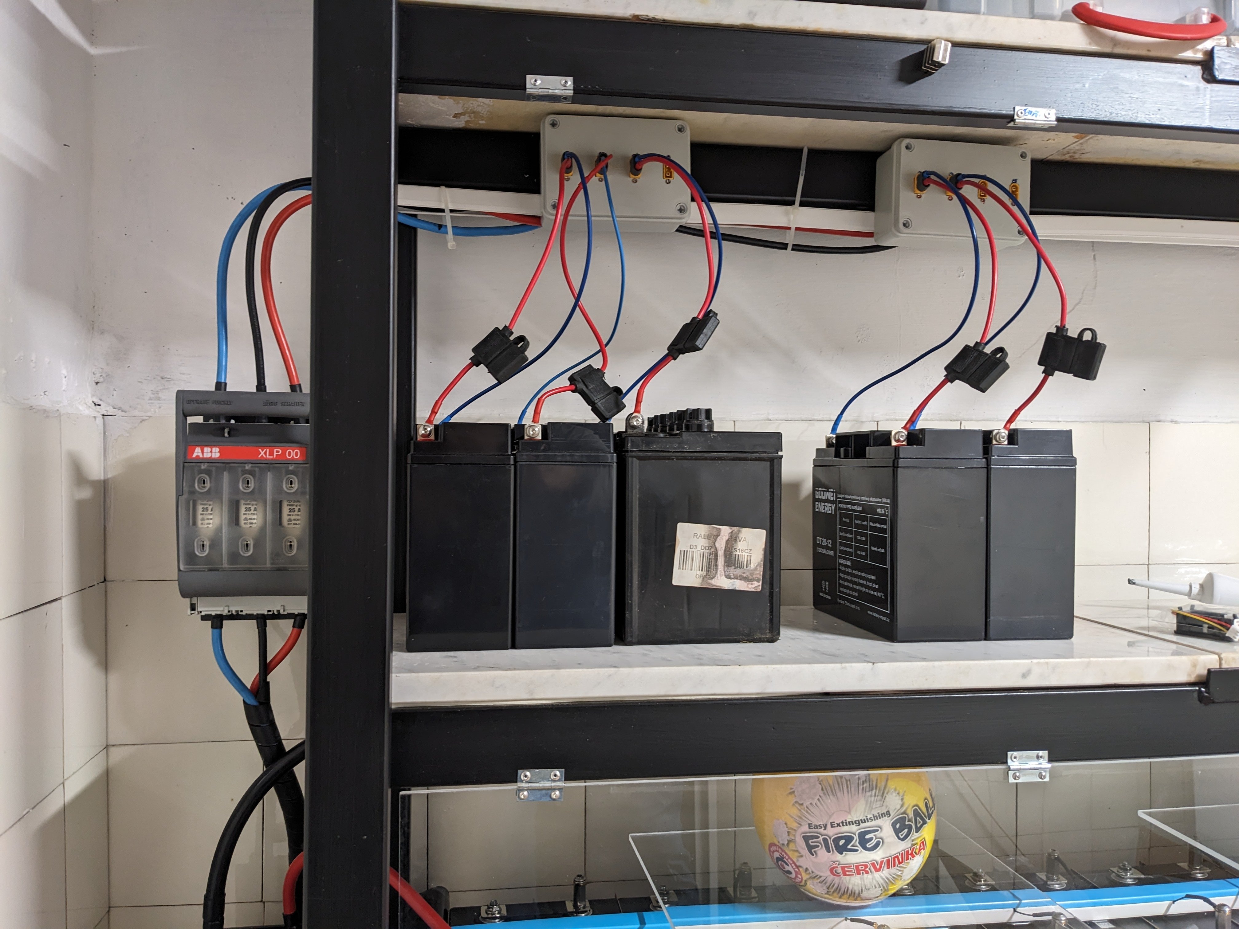 Ke každému akumulátoru pojistku a myslím, že můžeš být v klidu. Mám tak zapojené staré gelovky z UPS a na zimu i klasickou zaplavenou z traktoru pro zálohu 12/24 VDC