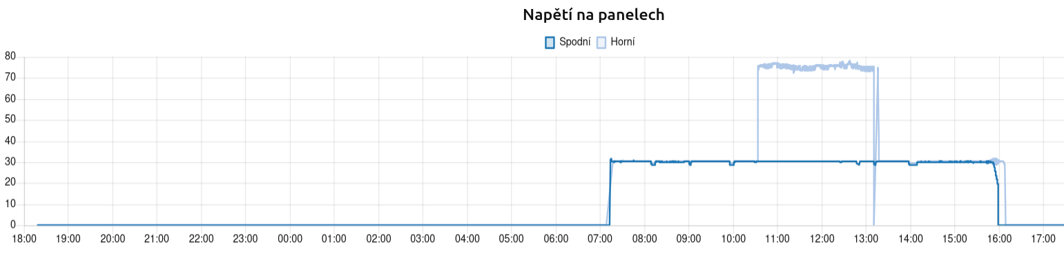 Tak napětí se moc s osvitem nemění, panel je proudový zdroj a napětí se mění tím jak ho zatěžuješ.