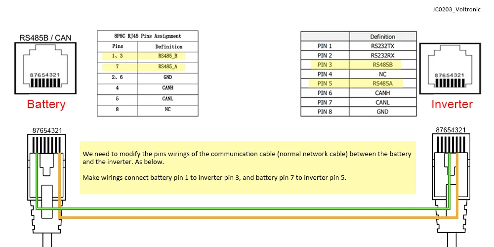 Josma bateria je dodavana s kablom RJ45 — USB, ktory obsahuje chip CH341. To sluzi na prevod RS485 na RS232 seriovy USB port.