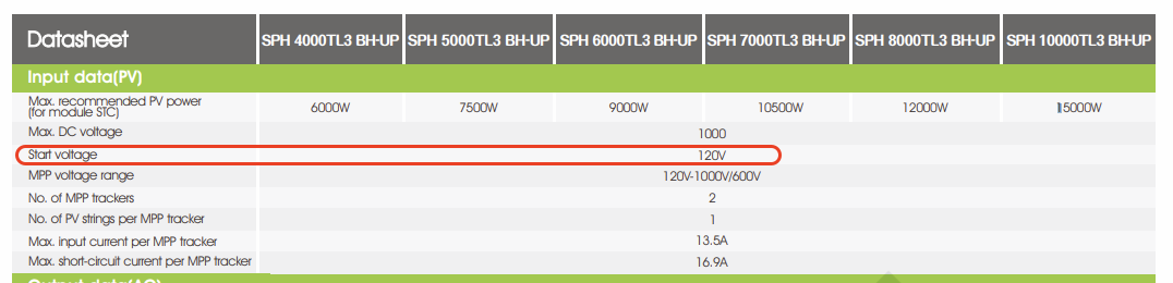 Jestli se dívám správně, tak startovací napětí má 120V. Nejsem odborník na Growatt, takže nevím, jestli to minimání napětí závisí ještě na napětí baterie.