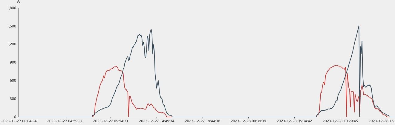 Nějakou dobu však dumám nad tím, že string PV1 má nižší výkon, než bych čekal: