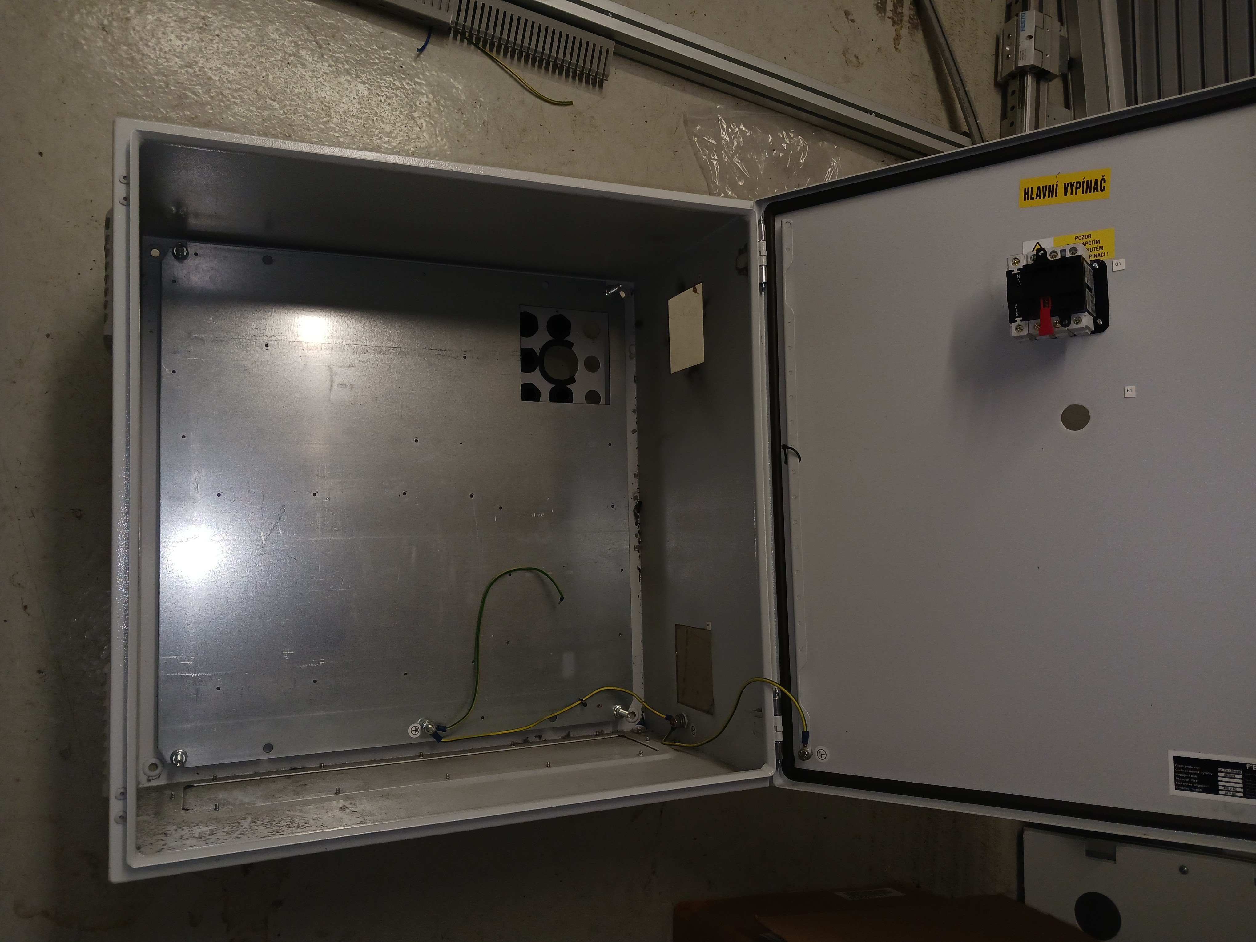 Na boku větrání (mřížku mám) uvnitř zbytky instalace (svorky, lišty, jističe) mohu případně nafotit