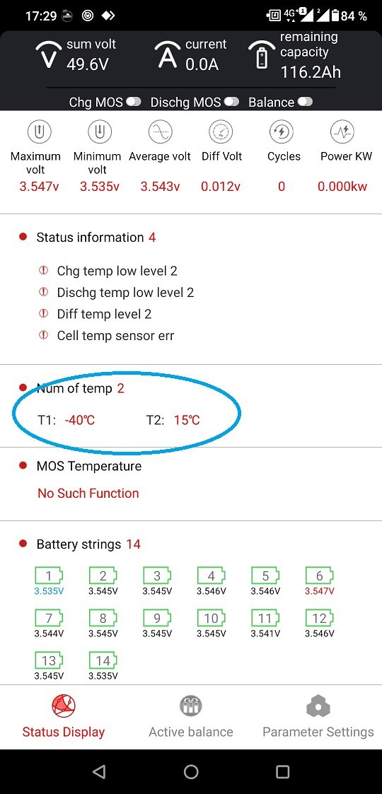 NTC termistory v E78 majú pri izbovej teplote 10k.ANT BMS aj JK BMS majú tiež 10k NTC termistory, s nimi to funguje, máš asi nejakú zvláštnu BMS ktorá používa iný odpor alebo možno iný typ čidla. Zmeraj si odpor pôvodného, ufiknutého čidla pri izbovej teplote.