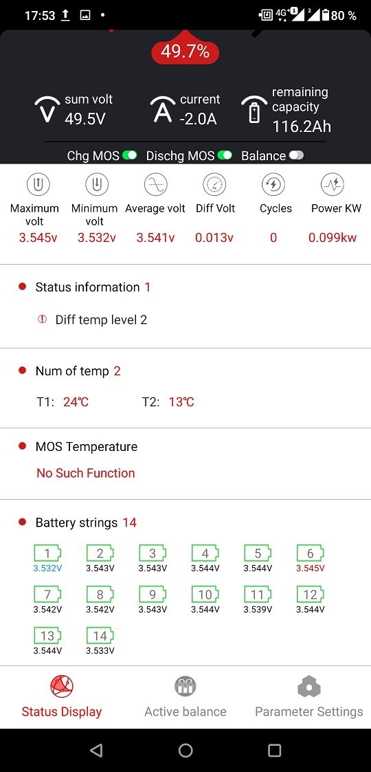 Tenkrát jen špatně zapojené kablíky. Funguje, ukazuje a měří to už dobře.matej píše: pát bře 08, 2024 9:06 pmNTC termistory v E78 majú pri izbovej teplote 10k.ANT BMS aj JK BMS majú tiež 10k NTC termistory, s nimi to funguje, máš asi nejakú zvláštnu BMS ktorá používa iný odpor alebo možno iný typ čidla. Zmeraj si odpor pôvodného, ufiknutého čidla pri izbovej teplote.