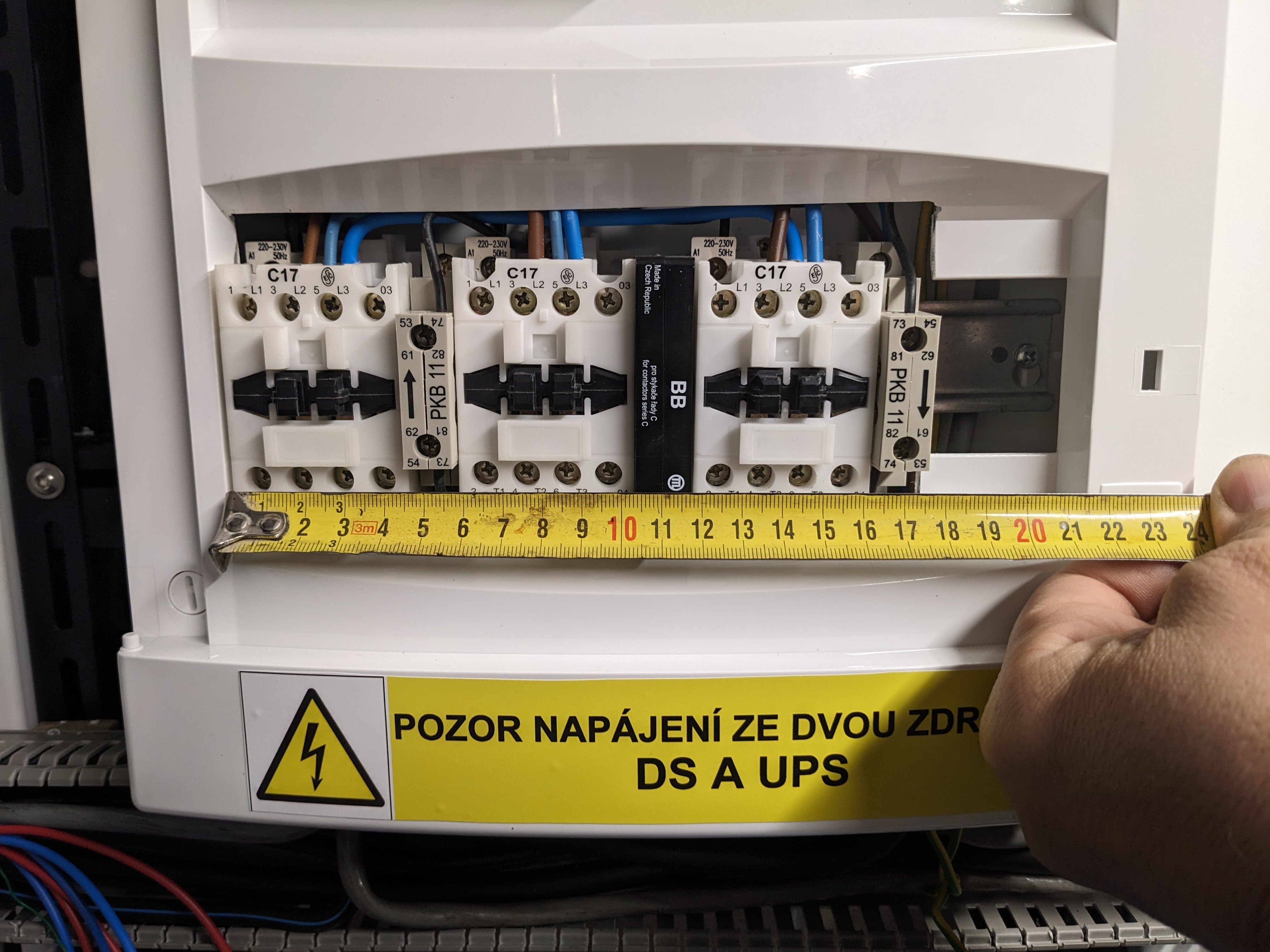 Pomocny kontakt povoluje prvni, uvolnuje druhy stykac. Takze pak uz to bude o nahode - dle velikosti proudu a uhlu sinosovky, zda se oblouky rozpadnou drive nez dojde ke kontaktu na DS. Hlavni domovni rozvadec mam ve vnitrnim prostoru domu, a tak tam rozhodne z duvodu pouziti velkeho mechanicky blokovaneho stykace nemuzu vybrusovat kryti rozvadece a zpristupnovat zive casti pobyvajicim osobam.Radar píše: ned led 21, 2024 10:20 amA co když nastane porucha na cívce síťového stykače 63-04 a ten odpadne a připojí za provozu měniče síť...?