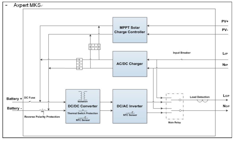 tu je asi ten zdroj...josse píše: sob led 20, 2024 10:11 amTen obrázek je lež, MKS takhle nefunguje.v levém horním rohu je psáno Axpert MKS a tohle prostě není pravda.skybor píše:Je možné, že tyto "lowcost" hybridní měniče (Axpert mks a vm a jejich klony) mají solo AC nabíječku a tím pádem podle mne nemůžou vytvořit jakýkoli přetok zpětně do sítě? Aspoň podle blokového schématu ze servisního manualu i ze zběžného prohlédnití "main boardu", mi to tak připadá.