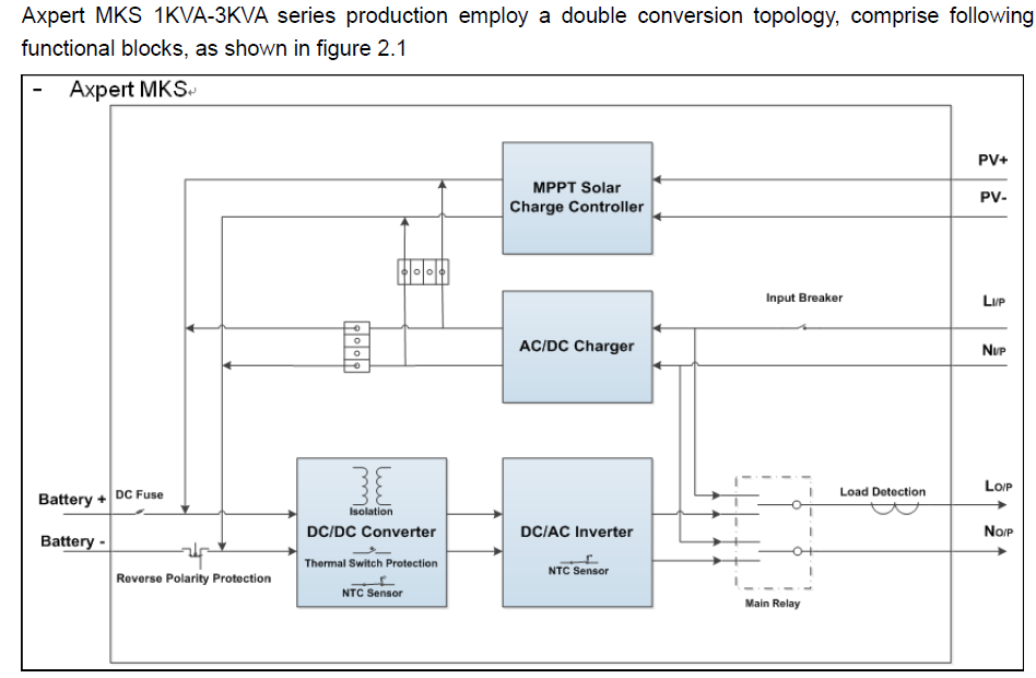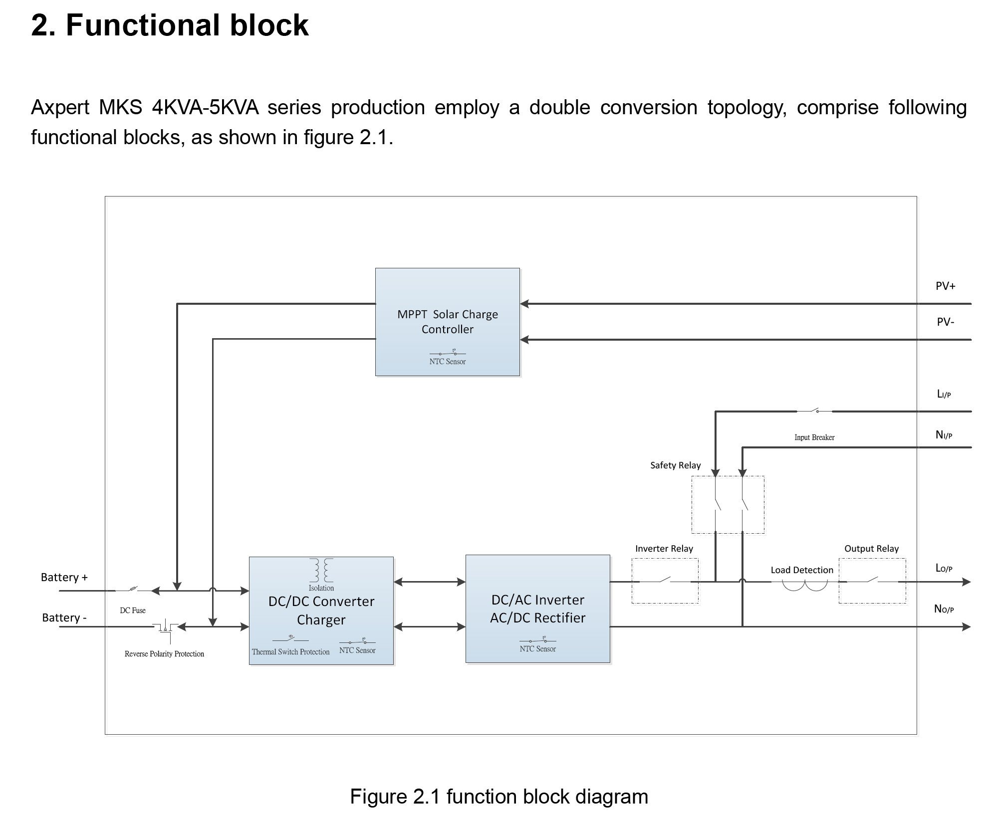V servisním manuálu "axpert_mks_4-5kva_service_manual_20131104.pdf" je toto funkční schéma: