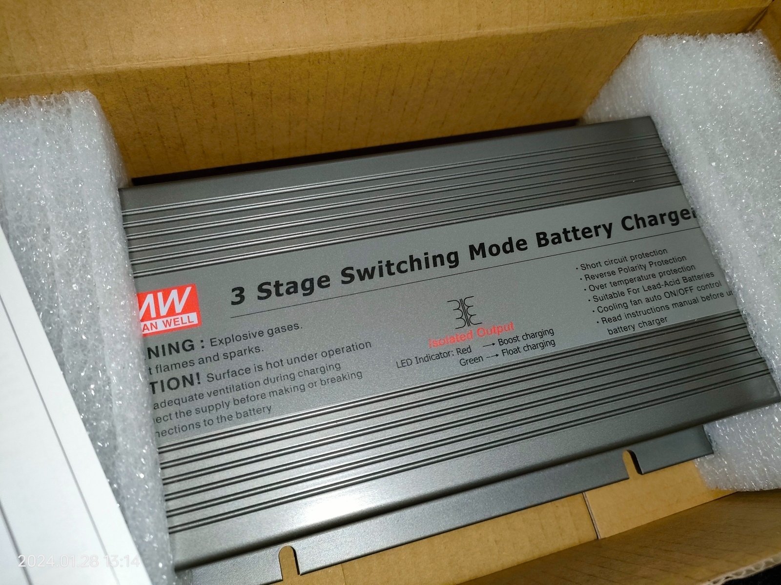 Nabízím zcela nový, nikdy nepoužitý nabíječ Meanwell PB-360P-12 s výkonem 12V a 24,3A za zvýhodněnou cenu 1999 Kč. Nabíječ je vhodný pro časté nabíjení olověných baterií, například u čistících strojů nebo záložních zdrojů. Disponuje třístupňovým nabíjením, ochranami proti přetížení, zkratu, přepětí a dalšími funkcemi pro bezpečný provoz. Balení neobsahuje kabely k baterii ani přívodní šňůru.
