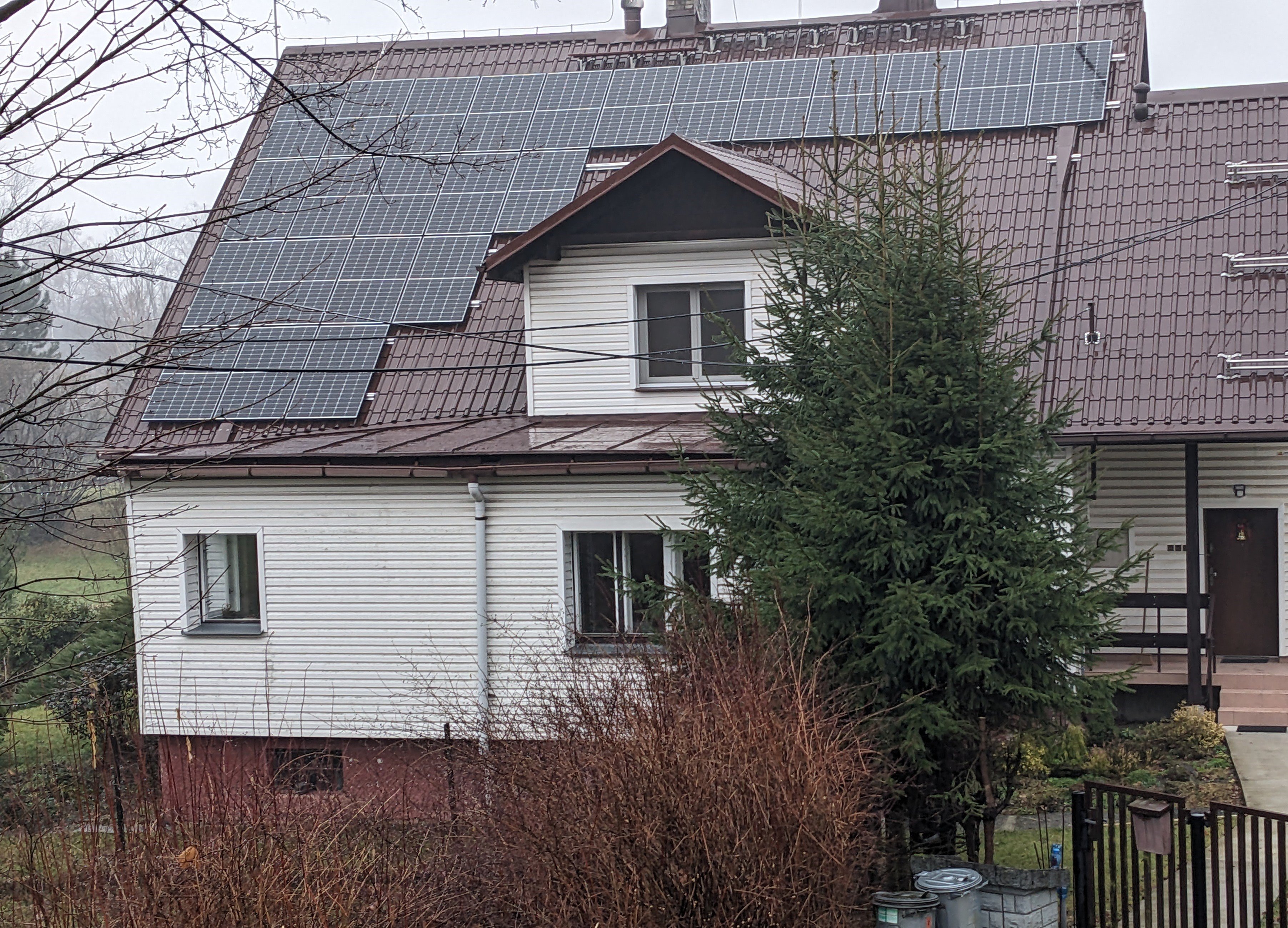 13,38 kWp: 9850 Wp Jih, 2040 Wp Východ, 1490 Wp Západ