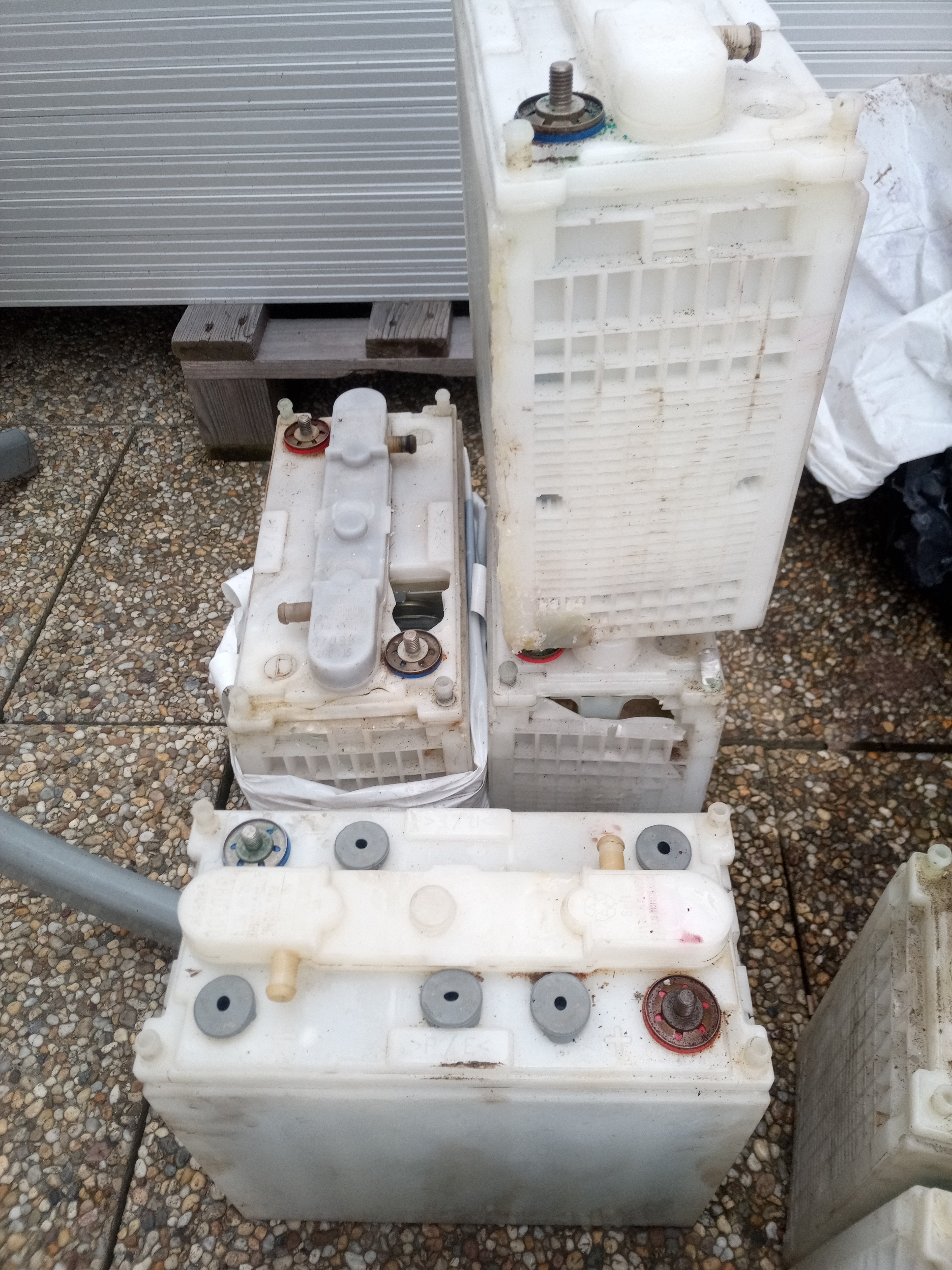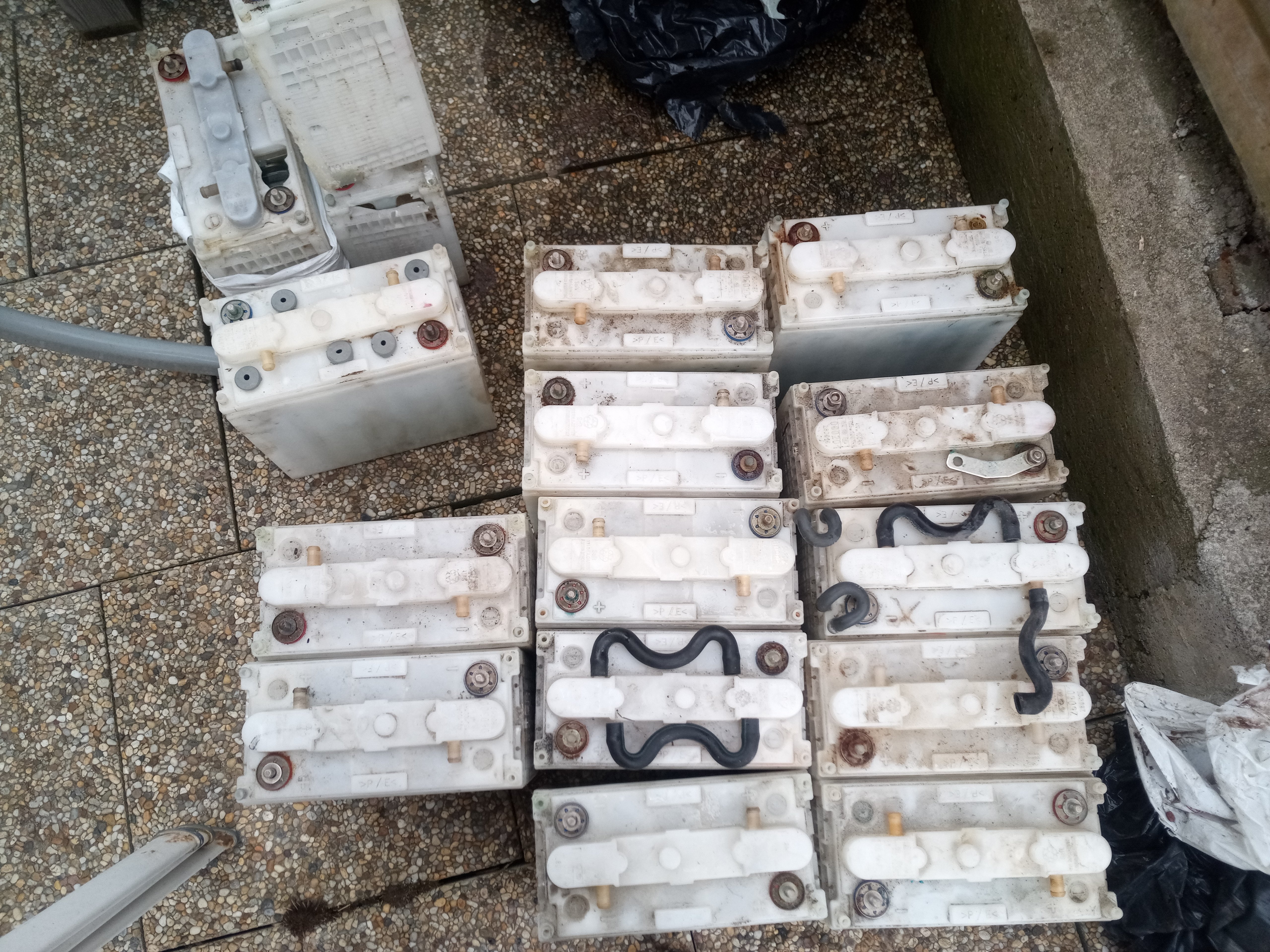 Tak mi to nedalo a raději jsem baterie vynosil na světlo a vybalil z igelitů a zjistil jsem, že 12 ks se zdá být v pohodě. Jedna je svařovaná. jedna má gumové špunty asi od pokusu o repas elektrolytu a 2 kusy mají rozbitý obal. Vše je na foto.
