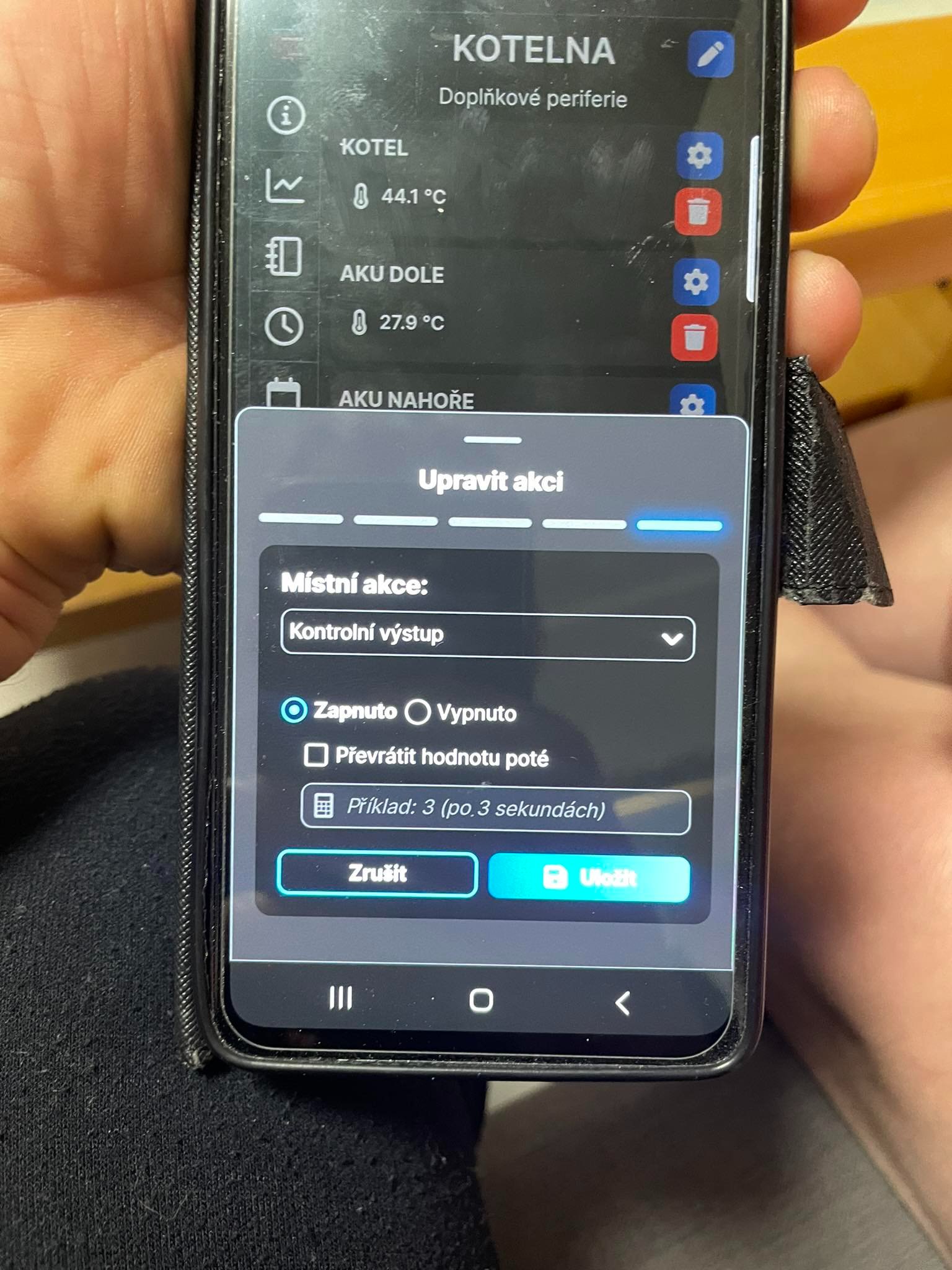 chtěl bych se prosím zeptat zda, by mi někdo nepomohl s tímto problémem. Jelikož mého tchána baví chytrá domácnost a neví si rady, rozhodl jsem se poptat zde Vás. Jedná se o přidání akce teplotního senzoru u AKU. Přidám Vám se obrázky pro lepší orientaci. Nicméně kliknu na akci, vyberu si teplotní senzor (103), zadám název akce, aktivní čas přeskočím a dám další a zadávám že,